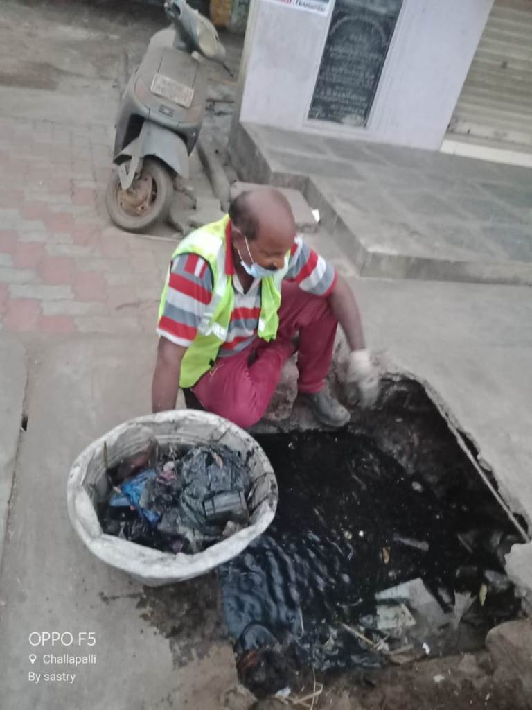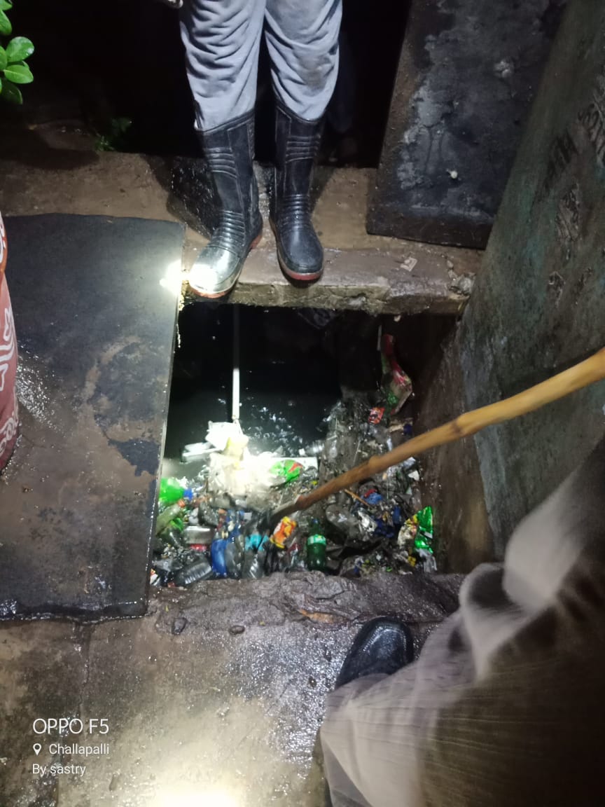 ఈ రోజు ఉదయం 4.30 కు మన స్వచ్చ కార్యక్రమం మొదలు పెట్టడానికి సెంటర్ కు వెళ్లాము. వర్షపు నీటితో సెంటర్ అంతా నిండిపోయిఉంది. డ్రైన్లపై ఉన్న బండలను తీసి డ్రైన్లను చూడగా అవి ప్లాస్టిక్ సీసాలు, ప్లాస్టిక్ గ్లాసులు, ప్లాస్టిక్ కారీ బ్యాగులు, టీ కప్పులు, కొబ్బరి బోండాలతో నిండిపోయి ఉన్నాయి. వాటన్నిటిని బయటకు తీయగానే డ్రైన్లలోని మురుగు పారి రోడ్ల మీద ఉన్న నీరు డ్రైన్లలోకి వెళ్లిపోయినాయి.