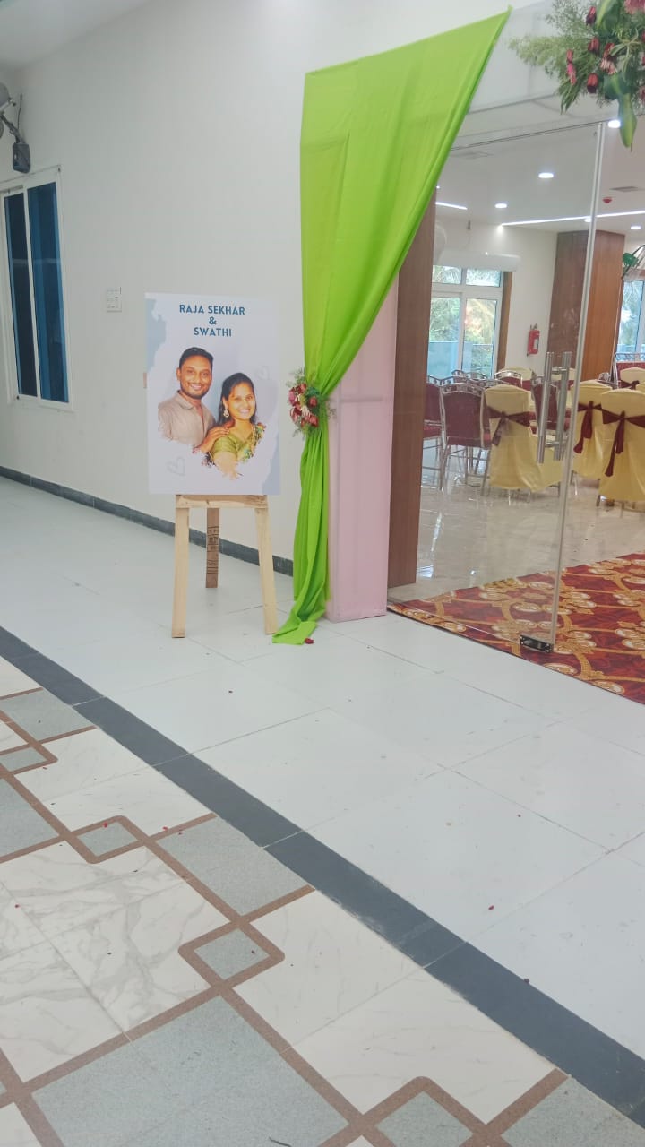 ఈరోజు జరిపిన తమ కుమార్తె ‘స్వాతి’ వివాహ పరిచయ వేడుకలో ఫ్లెక్సీ బదులు గుడ్డ బ్యానర్ నే రాయించారు.