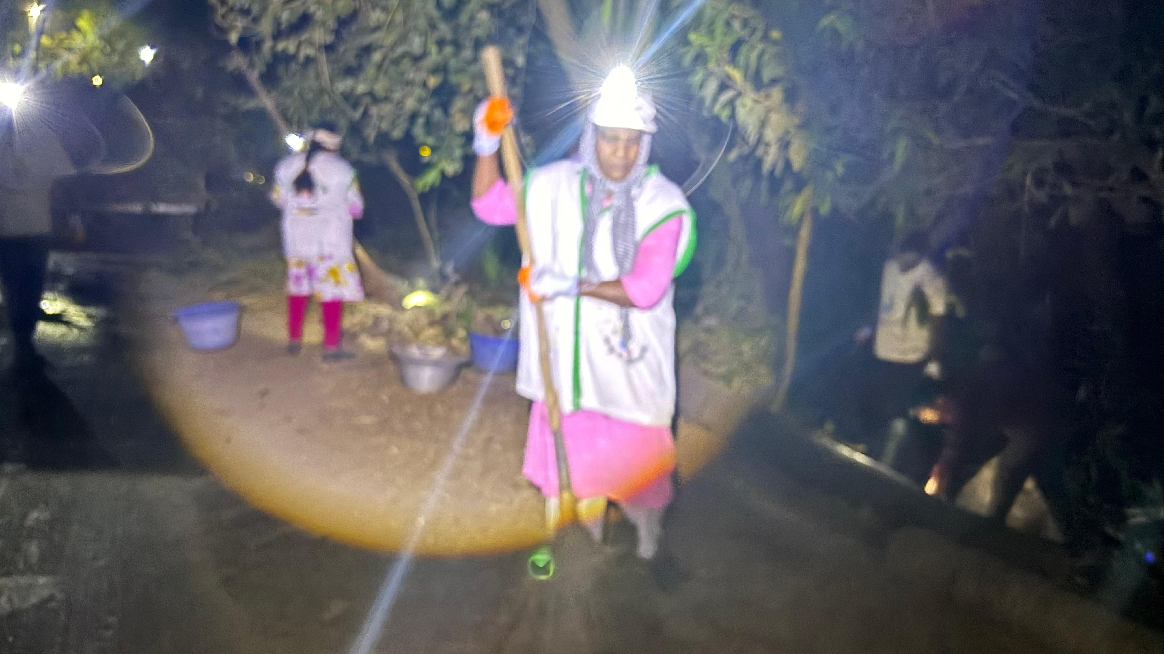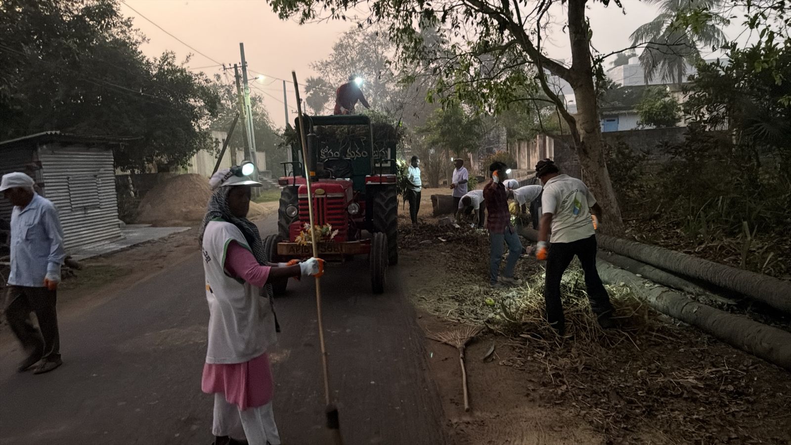 5) రహదారిని శుభ్రంగా ఊడ్చాకే, చెత్త ట్రాక్టర్ తో సహా ఊళ్లోకి ప్రవేశించారు!