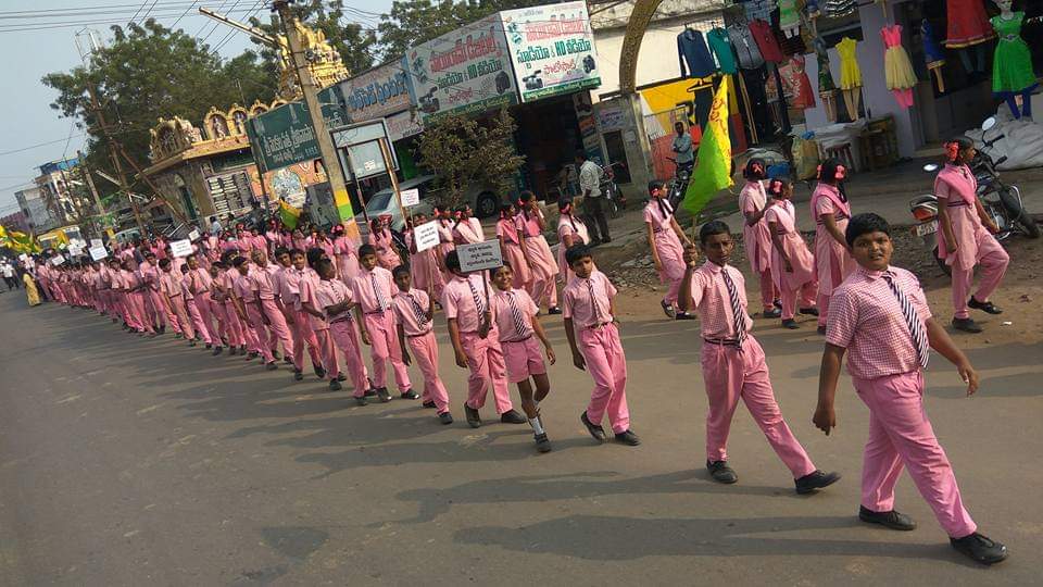పాఠశాలల విద్యార్దులతో ర్యాలీ నిర్వహించాలని నిర్ణయించారు. కనీసం 800 మంది ఉండాలని , అందరూ srysp college నుండి గ్రామంలో నినాదాలతో పాదయాత్ర జరపాలని తలచారు.