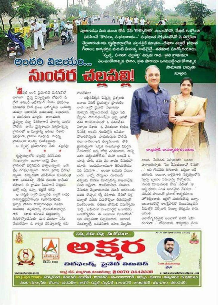 కాగా. దేశంలో తెలుగు పేపరు చదివే వారందరికీ స్వచ్చ చల్లపల్లి గురించి తెలియజేసారు ఈటీవీ యాజమాన్యం.