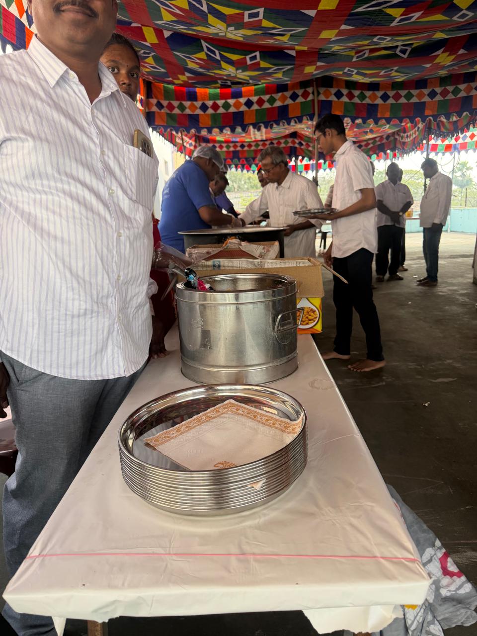 2. భోజనాలకు స్టీలు పళ్ళాలను, రెమ్మ విస్తర్లను ఉపయోగించారు.