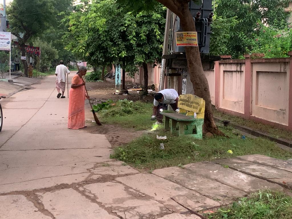 ఒక పంచాయతీ వార్డు మాజీ ప్రతినిధీ, ఇంకో వ్యాపారీ గోకుడు పారల్తో గజాల బాటను గోకుతున్న వైనం –(అదేదో ఫొటోల కోసం కాదు-) ఎవరైనా దగ్గరగా గమనిస్తే- ‘గంటన్నర కాలం వంచిన నడు మెత్తకుండా – ఈ వేకువ వేళ ఎలా శ్రమించ గలుగుతున్నారు!’ అని ఆశ్చర్యపడకమానరు!