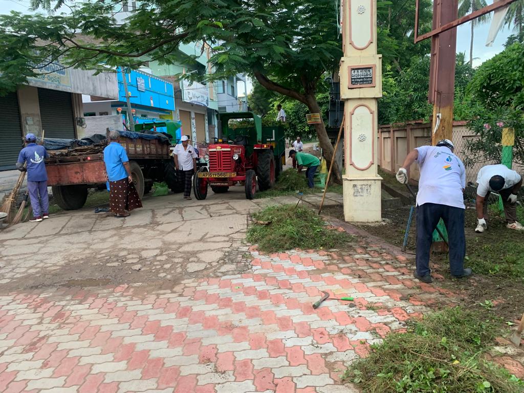 మూడు చోట్లా ఊడ్చిన, పీకిన, పోగుబడిన వ్యర్థాల్ని డిప్పలకెత్తుకొని, ఒక సంచార చెత్త వాహనంలో కెత్తుతూ నలుగురు తిరుగుతున్నారు.