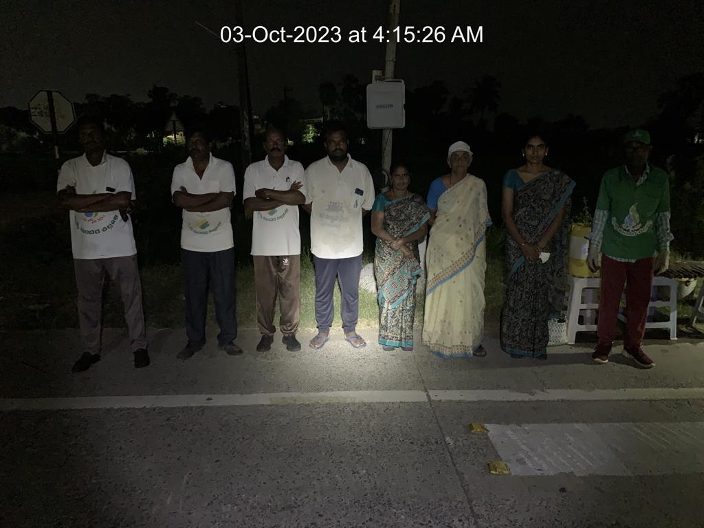ఈ మంగళవార (3.10.23) ప్పూట కార్యకర్తల కర్మశాల గంగులవారిపాలెం దగ్గరి NH16 జాతీయ రహదారే! పాల్గొన్న కష్టజీవుల సంఖ్య - ఊరి జనాభా(24000) తో పోల్చితే 0.1% శాతమే - అంటే 24 మందే! సంఖ్యను చిన్న చూపు చూసినా, వాళ్ల సంకల్పాన్ని తక్కువగా చూడవద్దు.