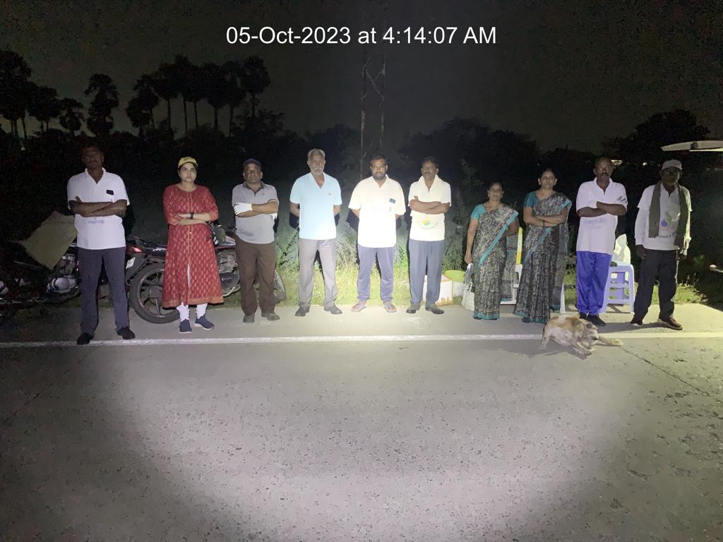 5.10.23 బ్రహ్మ కాలాన 4.14 కే ఊరికి దూరంగా MTM రహదారి కడకు వెళ్లి 6.06 దాక తీర్దానికి తీర్ధం, స్వార్థానికి స్వార్ధం దక్కించు కొన్న కార్యకర్తల సంఖ్య 28! తీర్ధమంటే - వేలాది గ్రామస్తులకీ, ప్రయాణికులకీ దక్కబోయే ఆహ్లాదం, స్వార్థమంటే - గంటన్నర శ్రమతో వచ్చే మానసిక తృప్తీ, శారీరక పుష్టీ !