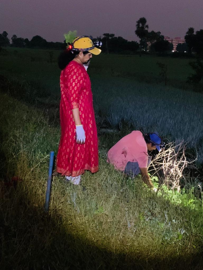 పనిచోటు మరొక మారు నిన్నటిదే - గంగుల వారి పాలెం సమీపం! పని స్వభావమైతే- తాము నాటిన మొక్కల చుట్టూ పెరిగిన గడ్డి నిర్మూలన ! నిన్నటి ప్రధాన కార్యక్షేత్రం NH 216 కు దక్షిణ భాగమైతే నేడది ఉత్తరానికి మారింది.