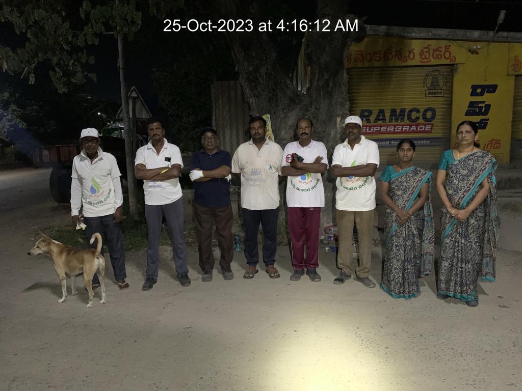 బుధవారం - అనగా 25.10.23 వేకువ 4.16 - 6.10 మధ్య వేళలో అది రుజువు పరచిన కార్యకర్తలు 24 మంది. తమ శ్రమదానానికి వాళ్లెన్నుకొన్న గ్రామ భాగం బెజవాడ దారిలోని శివాలయ ప్రాంతం.