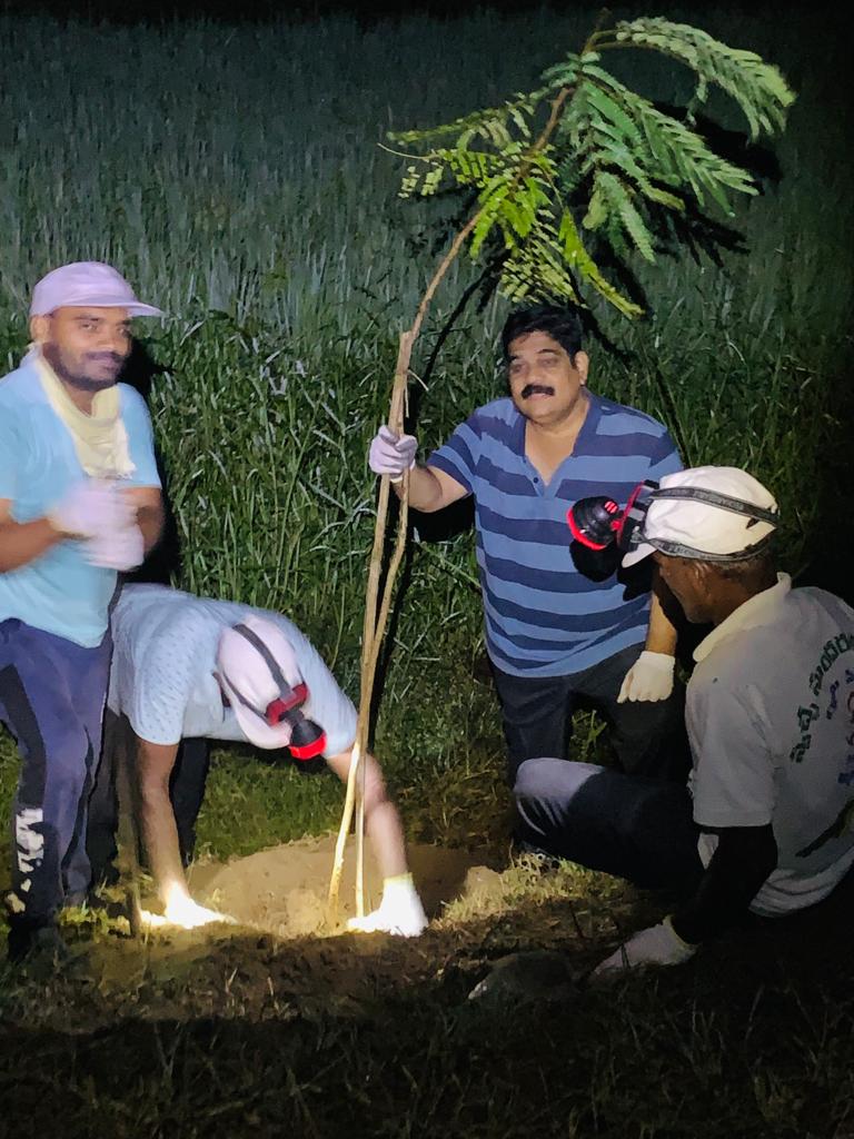 యువత ప్రాతినిధ్యం కూడ ఉన్న, ధ్యాన మండలి, లయన్స్ వంటి వారి ప్రమేయమున్న ఈ ఉదయం 4.20 - 6.16 నడుమ 2 గంటల పాటు కేవలం 58 చెట్లు నాటడమే కాదు – నిన్న పొరపాటున సరైన చోట్ల గుంటలు త్రవ్వక- ఈ వేళ మళ్లీ అనువైన చోట్ల త్రవ్వే పని వల్ల జాప్యం జరిగింది.