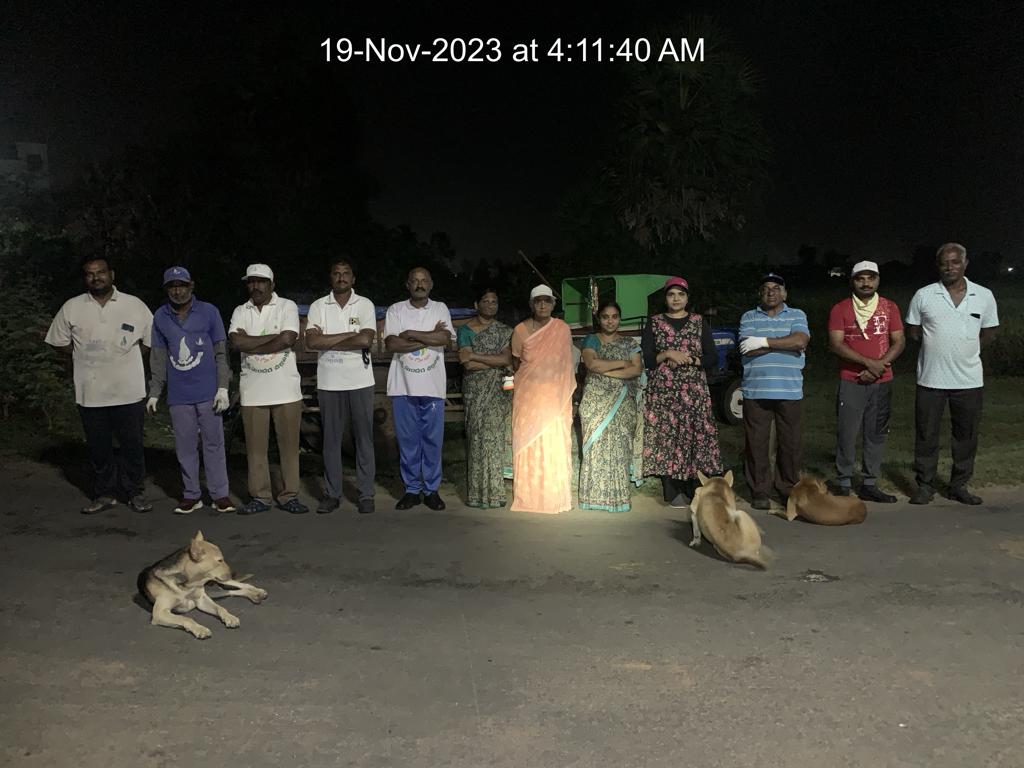 అసలే ఆదివారం(19-11-23) – ఆ పైన విజయవాడ నుండి ప్రయాణించి, డాక్టర్ గోపాళం శివన్నారాయణ ఆగమనం - గంగులవారిపాలెం వీధి నడుమ క్రిక్కిరిసినట్లు 53 మంది శ్రమదానం! మహిళలతో సహా భవఘ్ని - శాయినగర నివాసుల ప్రవేశంతో కళకళలాడిన వీధి పారిశుద్ధ్య సంగామ్రం! ఇంతా జేస్తే - స్వయంగా వచ్చి, చూసి, పాల్గొన్న వారిదే గదా ఈ ఆనందం!