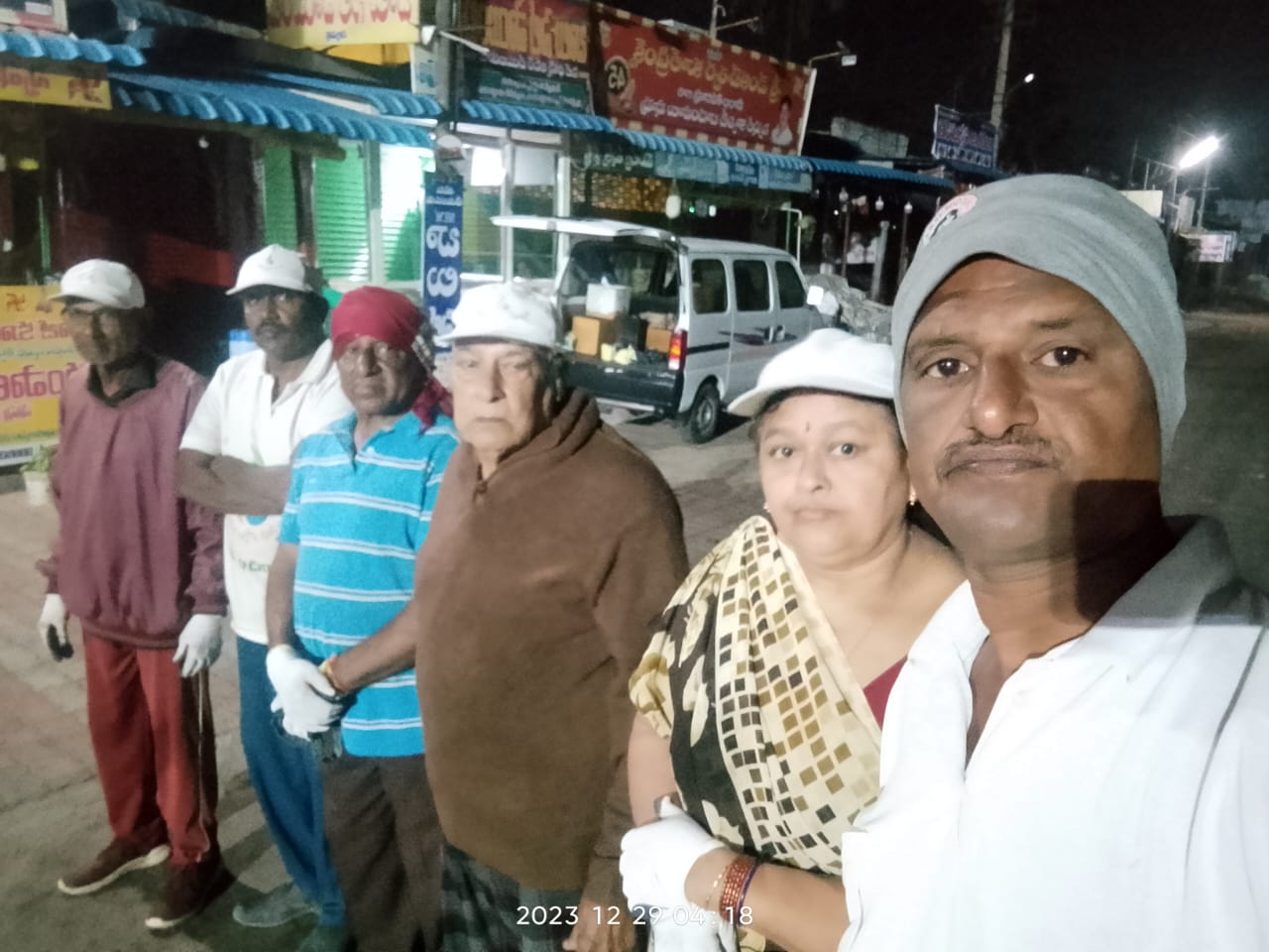 చెత్త గుట్టల లోడింగు ముగిసి, కాఫీలు సేవిస్తూ 6:20 కి హీరో వాహన విక్రేత దాసరి శ్రీనివాసుని నేతృత్వంలో మూడేసి మార్లు 2 రకాల స్వచ్ఛ సుందరోద్యమ నినాదాల్ని చాటించి, నేటికి తమ బాధ్యత ముగించారు?
