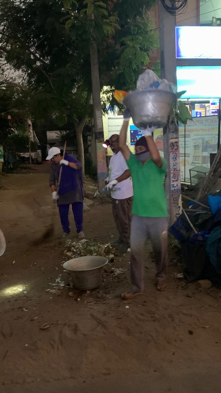 రకరకాల దుకాణాల, ఆలయాల, వస్తు విక్రయ కేంద్రాల వారు కాస్త బాధ్యతగా - మెలగడం వల్లనే వీధి శుభ్రతలో ఈ పురోగమనం. వీధి మార్జిన్లలో మాత్రమే ఇంకా గలీజులు కనిపిస్తున్నవి. అందువల్లే ఈ 40 కి పైగా కార్యకర్తలు - దుమ్ము-ఇసుకల్ని ఊడ్చారు, పిండి మిల్లుల, శీతలపానీయ అంగళ్ల దగ్గరి కొన్ని వ్యర్థాల్ని ఏరారు.