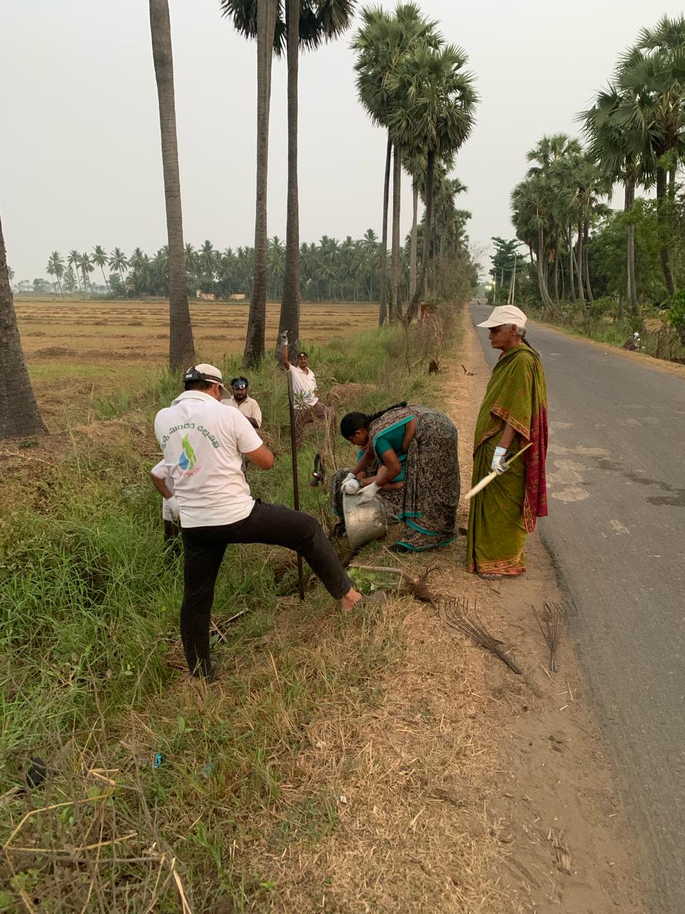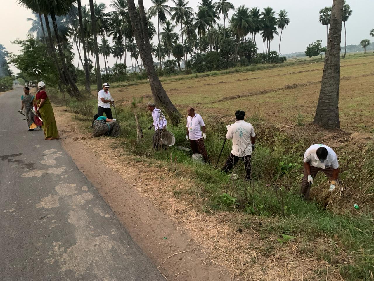 కొద్ది సమయానికే మట్టి పని ఐపోయి, రోడ్డు కిరువైపులా గడ్డీ-పిచ్చిమొక్కల మీద, ప్లాస్టిక్ వ్యర్థాల మీద - కొందరు కత్తుల్తో, కొందరు దంతెలతో, మరికొందరు చీపుళ్లతో విరుచుకుపడ్డారు . బాట కుడి ప్రక్కన కూడ చిన్న డొంకదారినీ శుభ్రపరిచారు.
