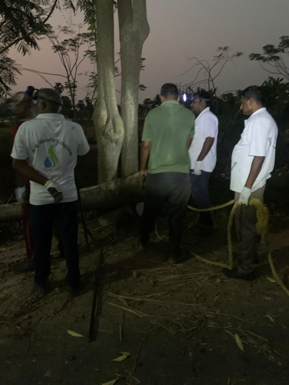రెస్క్యూదళం తొలుత గస్తీ గది దగ్గర కలుసుకొన్నది 4:20 కి, అక్కడికి 2 కిలోమీటర్ల దూరాన - NH216 కాసానగర్ వైపున ఆగి, పనిచేసింది 6:05 దాక - తిరిగి గస్తీ గది వద్దకు చేరుకొని, BSNL నరసింహుని నాయకత్వంలో స్వచ్ఛ సుందర గ్రామ నినాదాలు ప్రకటించింది 6:15 కు!
