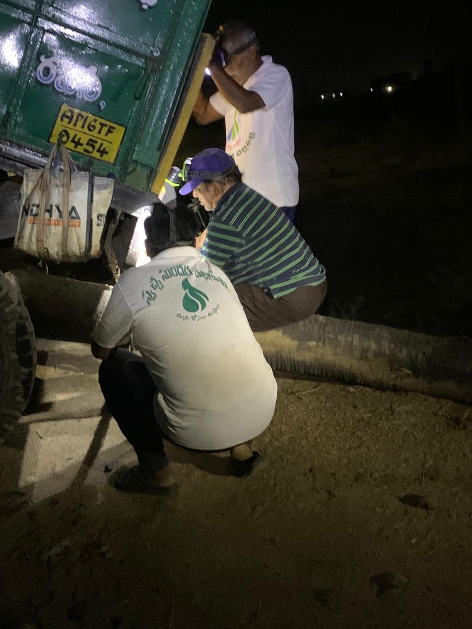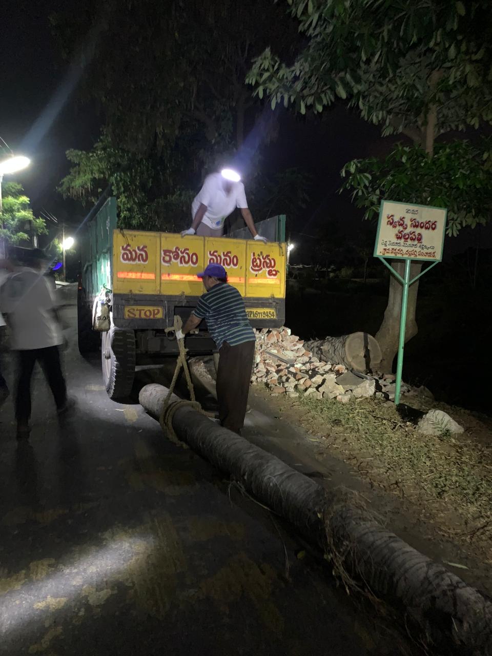 వీళ్ళు అప్పుడు - సరాసరి శివరామపురం రోడ్డు దగ్గర పడున్న తాడి చెట్టును మోకుల్తో ట్రాక్టరు కనుసంధించి, 3 కిలోమీటర్ల దూరంలోని బండ్రేవుకోడు కాల్వ వంతెన వద్దకు చేర్చి, ఏదో విసిరేసినట్లుకాక - రోడ్డుకు 4 అడుగల దవ్వున అందంగా అమర్చి, దేసు ప్రభాకరుని దాతృత్వంగా దొరికిన రద్దునంతకు ముందే అచ్చటకు చేర్చి, అందులోని నాపరాళ్ళను ఎంత అందంగా పేర్చి, 6:12 కి తామనుకొన్న పని ముగించారో గమనించండి!