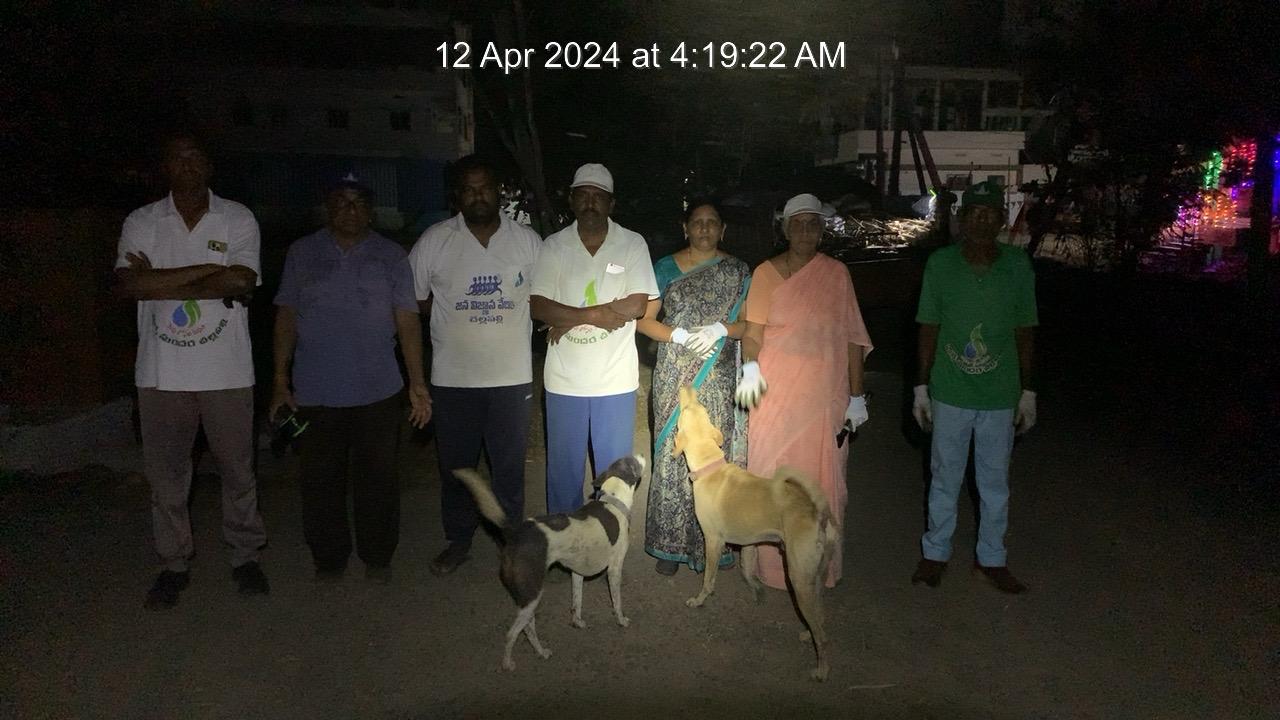 సదరు సంక్లిష్ట గ్రామ సామాజిక బాధ్యతామూర్తులు 20 మంది, బాగుపడిన గ్రామ భాగం బెజవాడ రోడ్డుకు చెందిన నారాయణరావు నగర్ వీధి మొదలు దక్షిణంగా 100 గజాల నిడివి. ఇందులో నిన్న పనికి ఆహార పథకంతో బాగా కనిపిస్తున్న తూర్పు ప్రక్క డ్రైనూ, నిన్న మిగిలిపోయిన బృందావన అపార్ట్మెంట్ల రేకు ప్రహరీ వెలుపలి చోటూ ఉన్నవి!