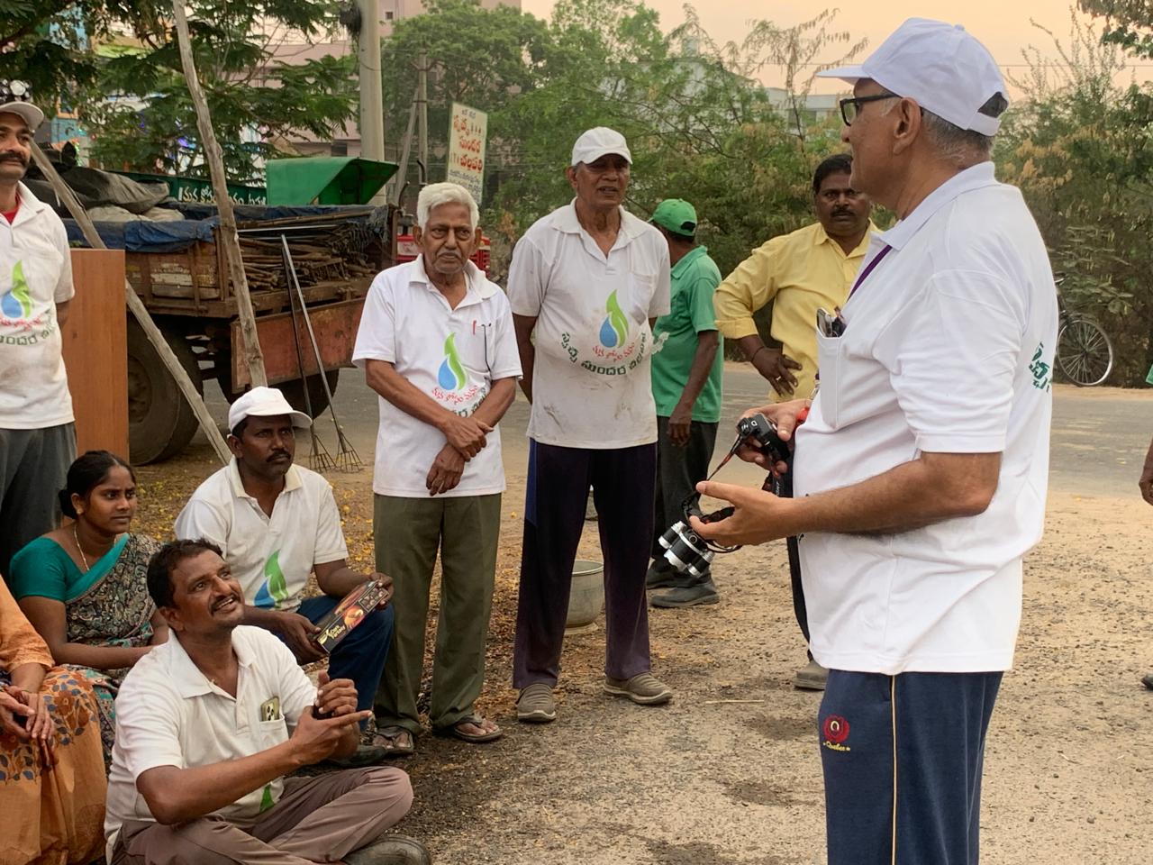 చివర్లో ప్రముఖ సుందరీకరణ చొరవశాలి ఆకుల దుర్గాప్రసాదు గారు పూనుకొని, గ్రామ స్వచ్చోద్యమ నినాదాలను ప్రకటిస్తున్నప్పుడు మొత్తం కారకర్తలు రెండు డజన్ల దాకా లెక్కించాను. ఇందులో సగం మంది 4:18 కే కార్యోత్సాహం చూపుతున్నారు.