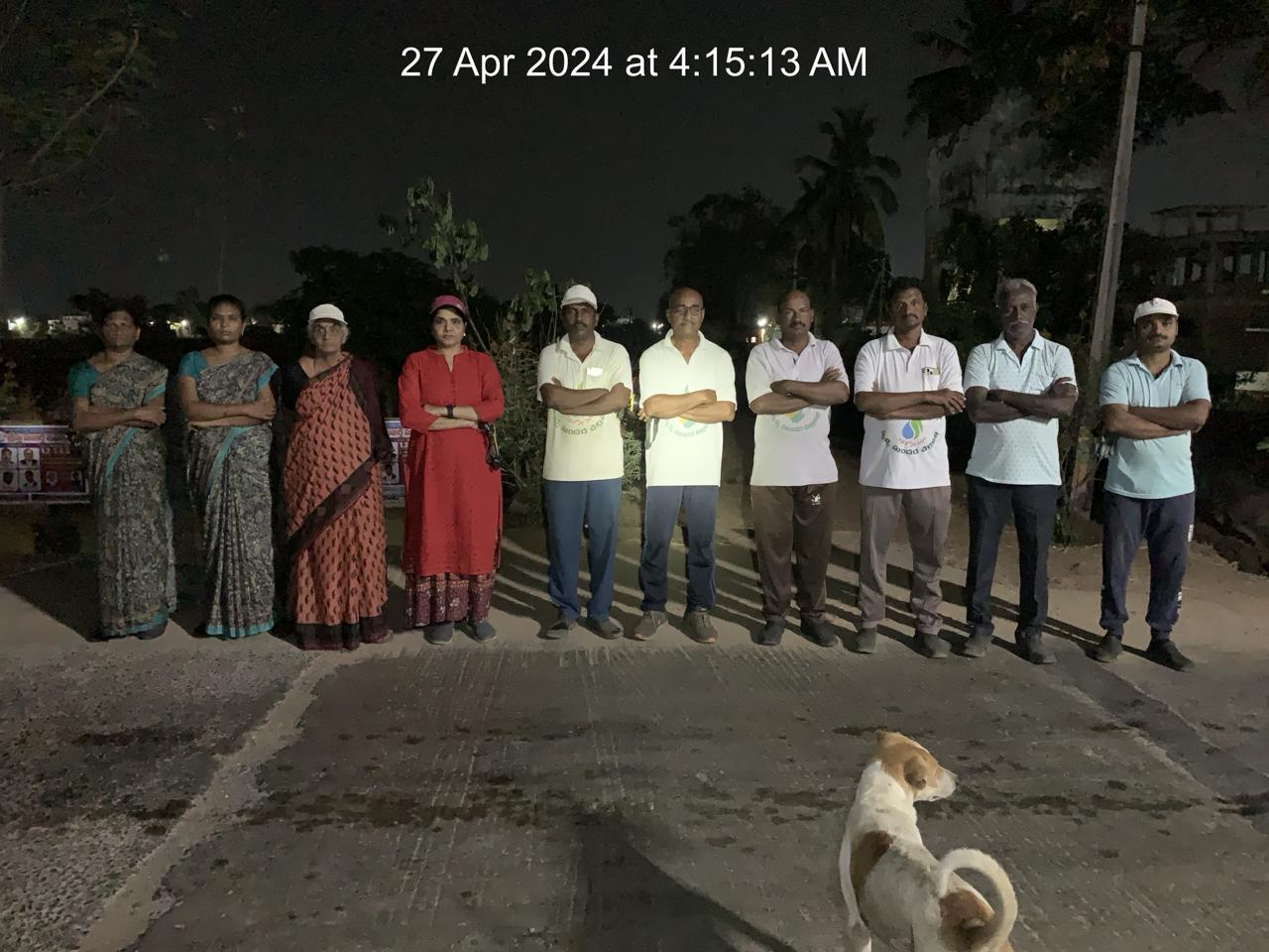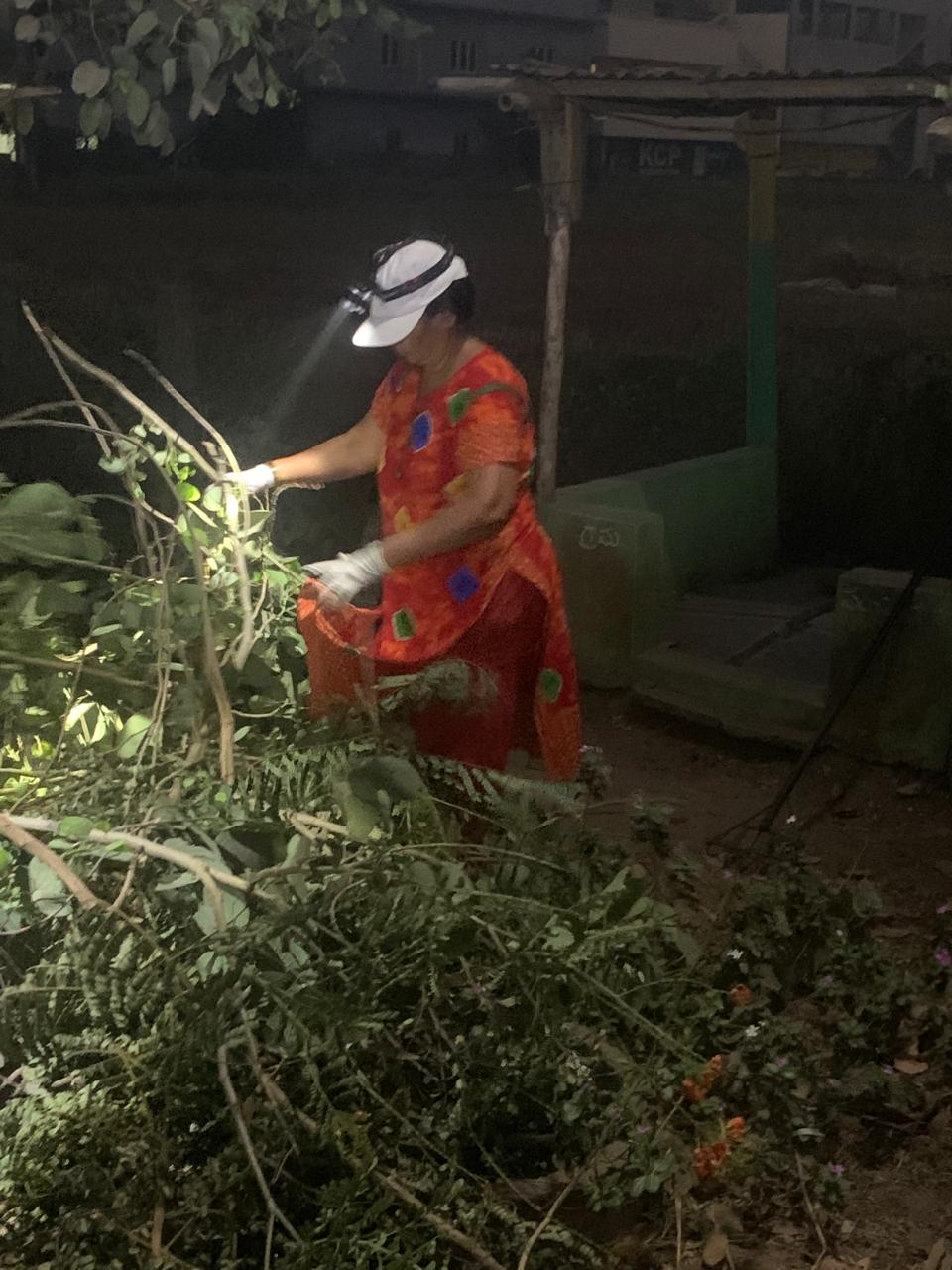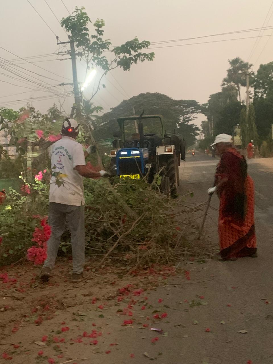 నారాయణరావునగర్ వైపుగా పంటకాల్వ ఉత్తరం గట్టు 50 గజాలూ, వంతెనకు దక్షిణ పశ్చిమంగా 50-60 గజాల వీధీ ఈ వేకువ కాలం కార్యకర్తల చెమటను రుచి చూశాయి! తత్ఫలితంగా నాలుగైదు ముళ్ల - పూలచెట్ల 30-40 కొమ్మలకు ఎత్తైన కరెంటు తీగల మధ్య నుండి విముక్తి కలిగింది - కరెంటు షాకు తగిలే అవకాశమున్న ఆ పనిలో నిమగ్నుడైన ఒకానొక సుందరీకర్తను గమనించండి!