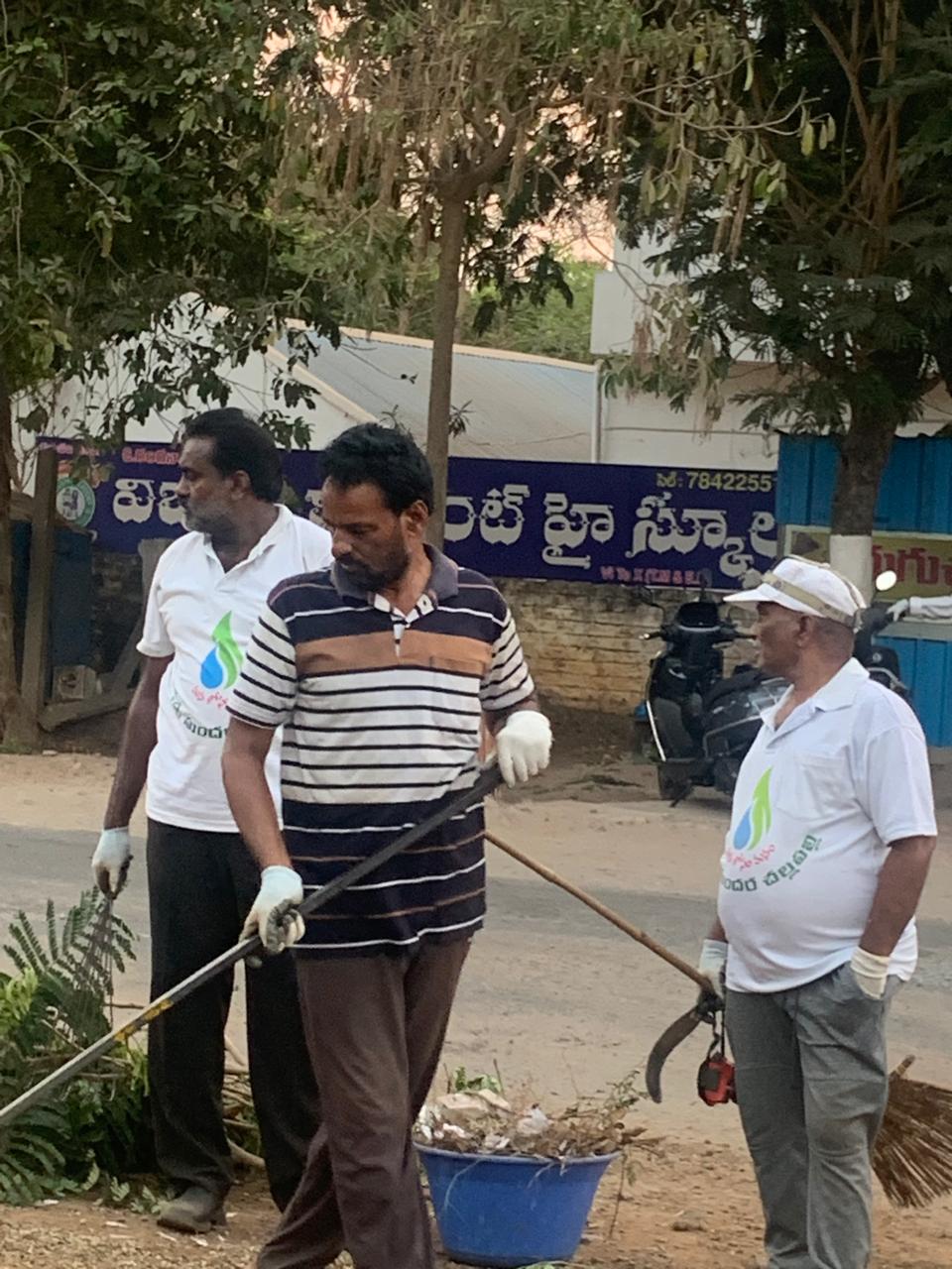 ఇద్దరు చీపుళ్ళతో వీధి నూడ్చేశారు. వ్యర్థాల్ని మోసి, ఒక చోట కు చేర్చిన బాధ్యత నలుగురిది!