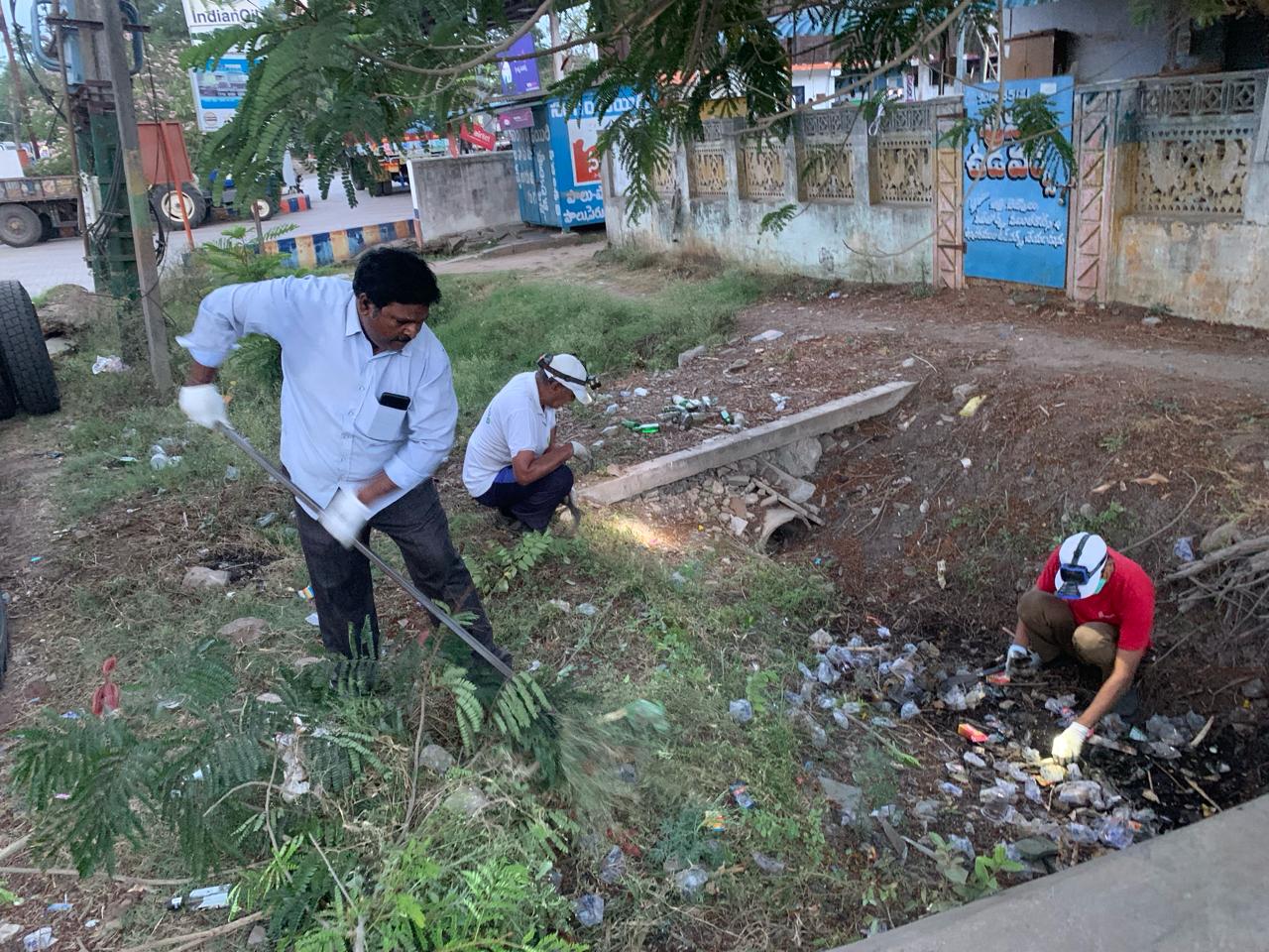 ఇటు విజయవాడ రహదారిలో పనిచేస్తున్న 14-15 మందీ అంతే! కోమలానగర్లోని మిల్లు ఎదుటా, పరిమితంగా 2 వీధుల్లో, వాటి మురుగు కాల్వల్లో శ్రమించే వాళ్ళు శ్రమిస్తూనే ఉన్నారు. రోడ్డు పడమరగా ఒకానొక బుద్ధిజీవిచే దురాక్రమిత మార్జిన్ స్థలాన్నీ, బంకు దాక డ్రైన్ కశ్మలాల్నీ కత్తుల్తో శిక్షించి, ట్రాన్స్ఫార్మర్ల క్రింది భాగాన్ని కూడ శుభ్రపరచిన అ విశ్రాంత కార్యకర్తలకూ, NTR పార్కు దాక తూర్పు దిక్కున పాటుబడిన కర్మిష్టులకూ జోహార్లు!