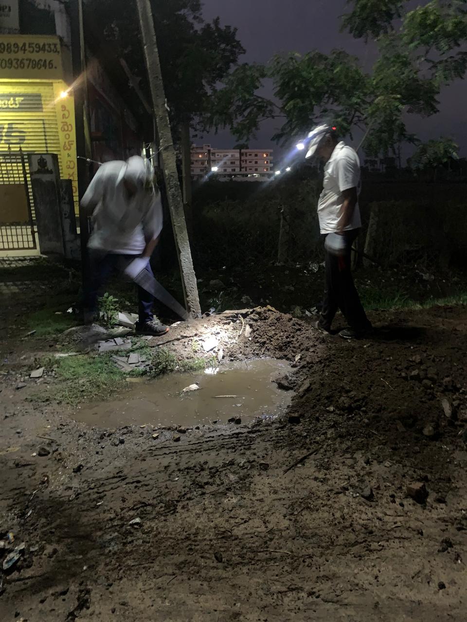 మహిళలెక్కువగా ఉన్న 2 వ కార్యకర్తల గుంపు మళ్లీ గాంధీ స్మృతి వనం ఎదుటి వీధి భాగాన్ని పట్టుకొన్నది. వానలకి వీధి మార్జిన్ల మట్టి రోడ్డెక్కి, నదిలో ఉండాల్సిన ఇసుక దాంతో కలిసి, రోడ్డును మూసేస్తుంటే, తక్కిన గ్రామస్తుల్లా చూసి, సహించలేని బలహీనులు కదా – ఆ 60-70 గజాల బారునా – ముఖ్యంగా సిమెంటు గోడౌను వద్ద ఈ 13 మంది కష్టం చూసే తీరాలి! పారలతో చెక్కిన, గునపాలతో పొడిచిన ఫలితంగా ఎవరి గూళ్ళు పట్టుకుపోయాయో రేపు తెలియవచ్చు!