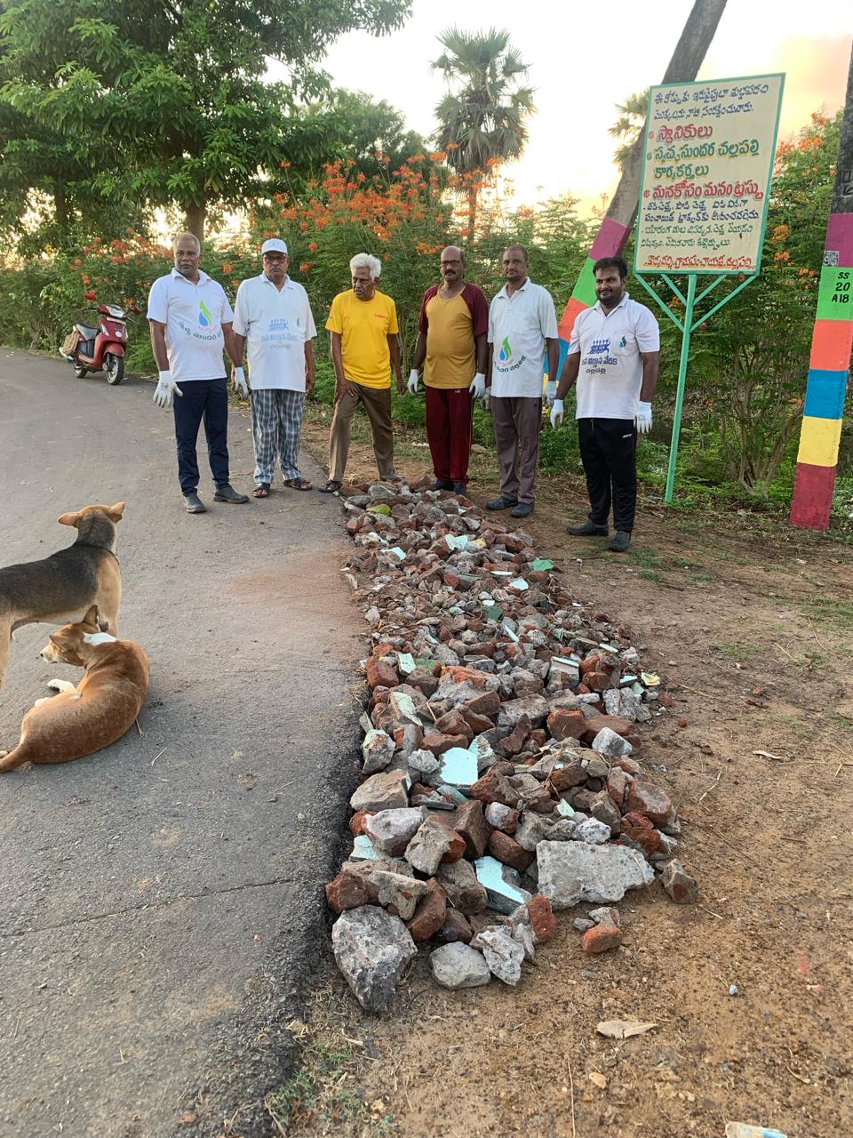 నిన్న జాతీయ రహదారి వికృతాలను సరిజేసిన వాలంటీర్ల టీమ్ ఈ పూట గంగులవారిపాలెం/ భవఘ్ని నగర్ల రోడ్డు మార్జిన్ గుంటల్ని చక్కబెట్టే పని చేపట్టింది. ఆ గుంటలు వర్షాలకు నీళ్లు పెరిగి, భారీ వాహనాల వల్ల రోడ్డు దెబ్బతినే పరిస్థితిని పసిగట్టిన కార్యకర్తలు SBI దగ్గర రాతిముక్కల రద్దును చూసి, ఉడత్తు బాబు గారి అనుమతితో ఉచితంగా ఆ గుట్టను ట్రక్కులో నింపుకొని, ఆ లోపాల్ని సరిజేయడమే నేటి పని!