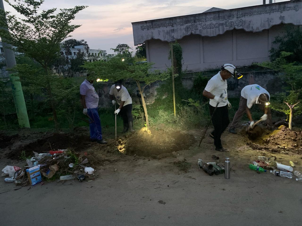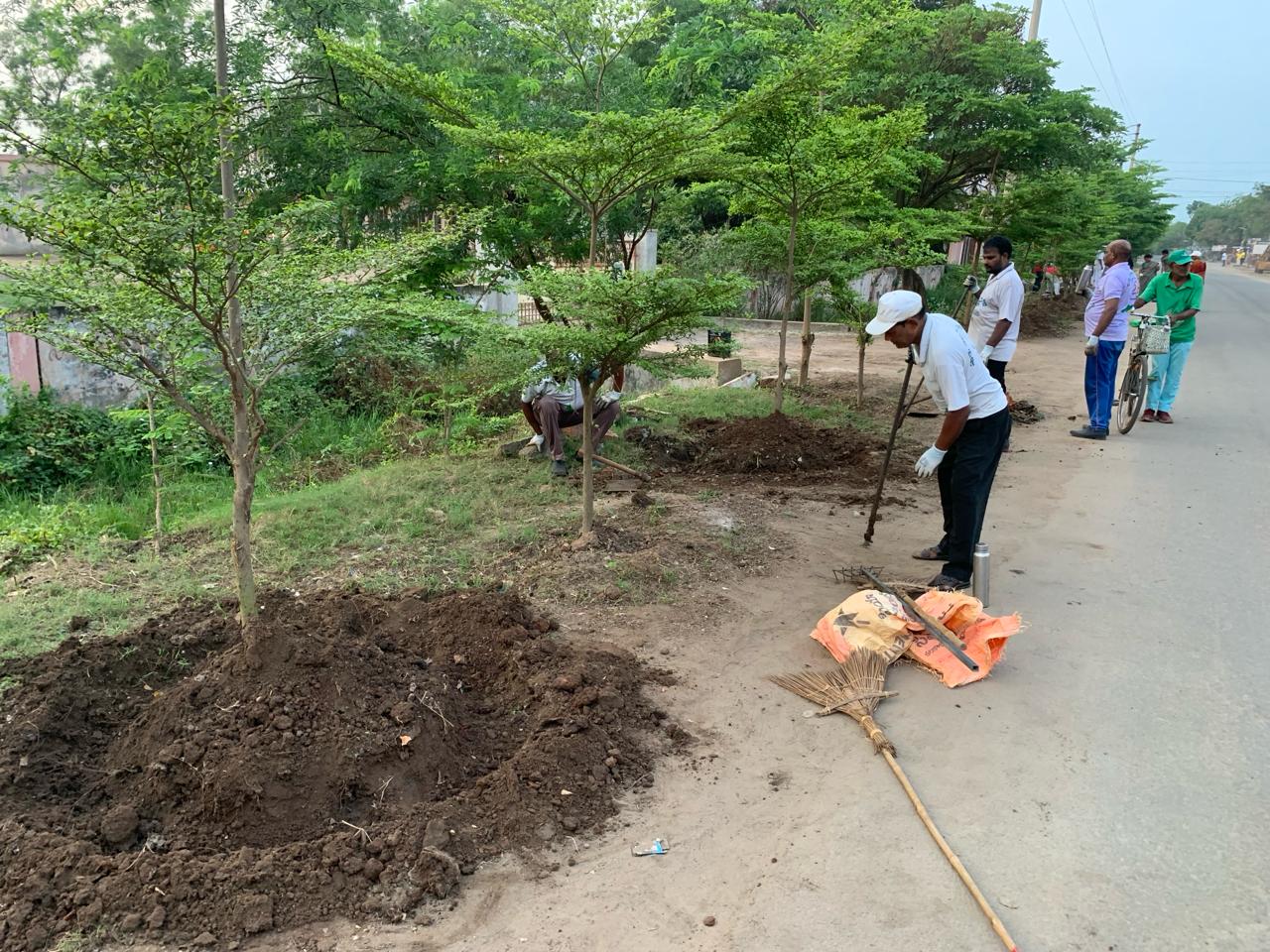 ఏకంగా డజను మంది కార్యకర్తల కఠోర శ్రమతో విద్యుదుపకేంద్రం ఎదుట పదారో - పదేడో చెట్ల పాదులెంత అందంగా, పొందికగా కనిపిస్తున్నవో చూడవచ్చు!