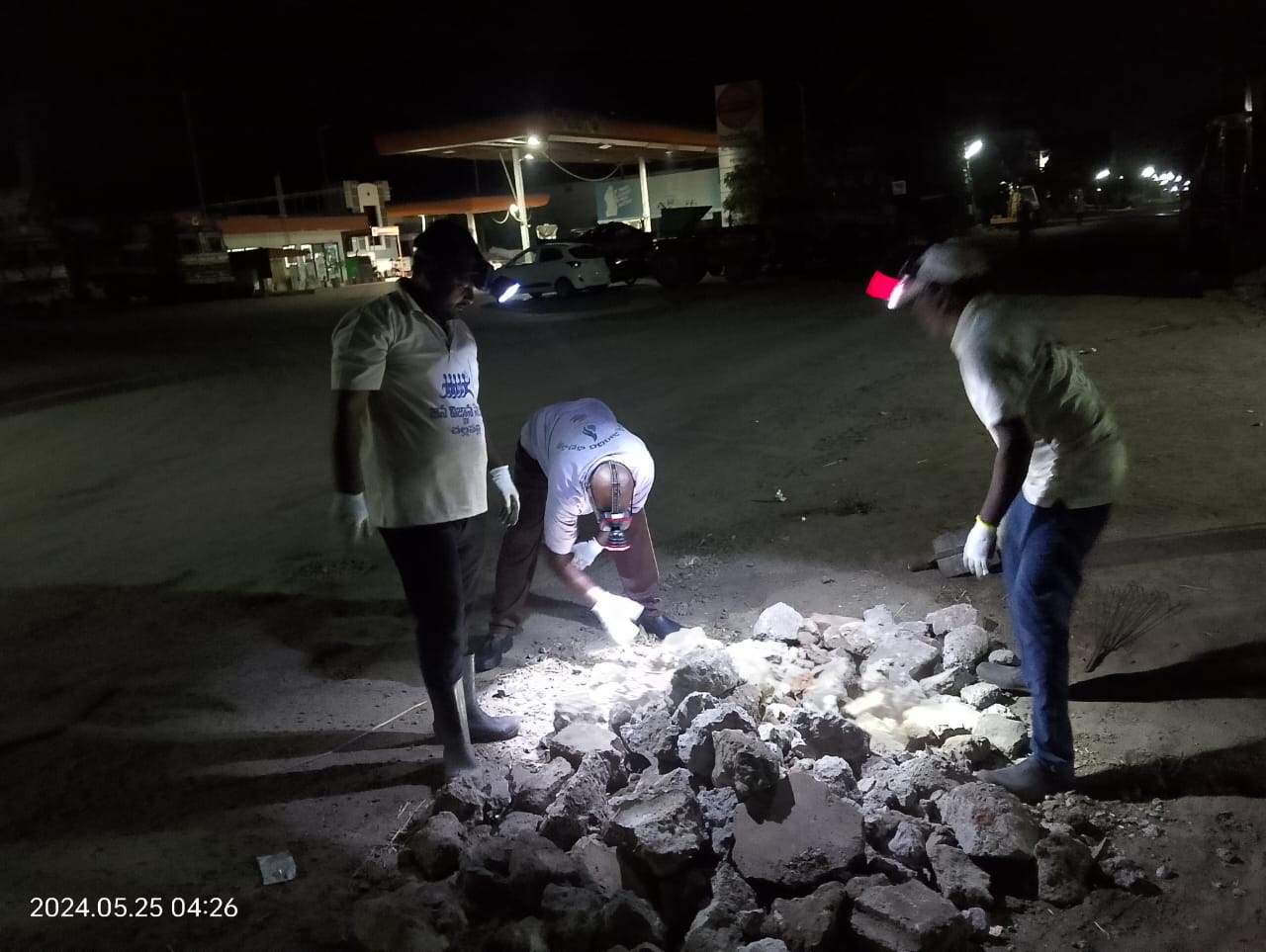 ఎంత దారుణమైన ఉక్కపోతగా ఉన్నా - 12-13 మంది కార్యకర్తలు 4.15 కాకముందే బెజవాడ బాటలోని పెట్రోలు బంకును చేరుకున్నారు; నిన్నటి తరువాయి వీధి స్వచ్ఛ కర్మలు ప్రారంభించారు; మిగిలిన కార్యకర్తలు ఒకొక్కరుగా రావడమూ, చేతొడుగులూ - పనిముట్లూ తీసుకుని వీధి కాలుష్యాలపైన కాలు దువ్వడమూ జరుగుతూనే ఉన్నది.