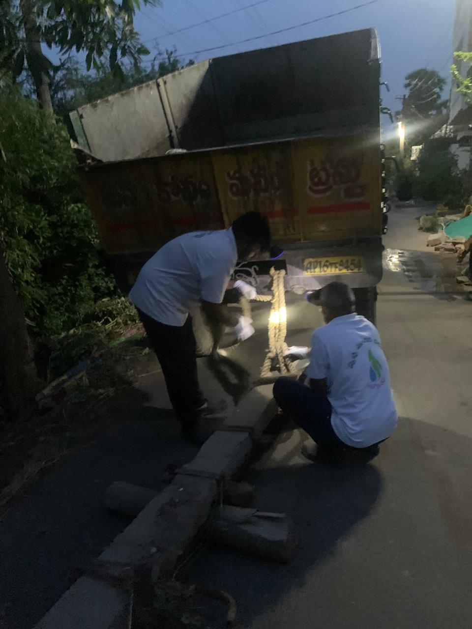 జాతీయ రహదారి ప్రక్కన అనాథగా పడున్న అంతే భారీ స్తంభాన్ని 5 గురు కార్యకర్తలు బలాత్కరించి, గంగులవారిపాలెం వీధిలోకి చేర్చి, అమర్చడాన్నీ –