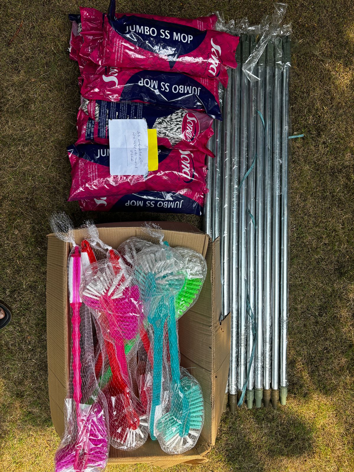 ఈ నాటి విశేషమేమంటే – ఎక్కడినుండో, ఎవరో గాని ఒక అజ్ఞాత దాత 10 మాప్లను, 20 బ్రష్ లను నిన్న సాయంత్రం ఆసుపత్రి గేటు లోపల పెట్టి వెళ్లారు. దాని లోపల ఉన్న చీటీ ఇట్లున్నది.