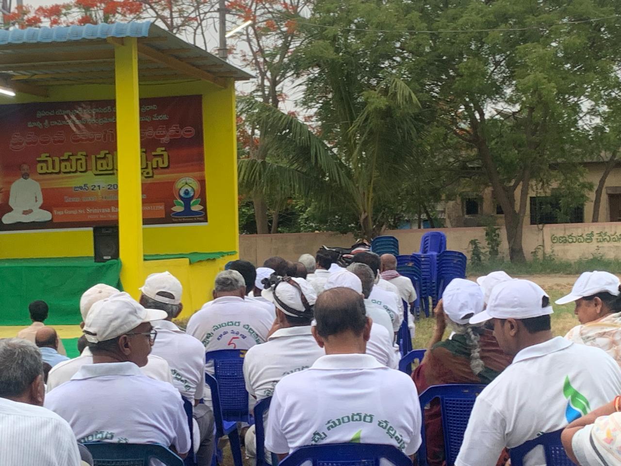శుక్రవారం వేకువ బైపాస్ వీధి నుండి కార్యకర్తల కార్యరంగం బెజవాడ వీధిలోని NTR పార్కు వద్దకు మారింది. కారణం – ‘ప్రపంచ యోగా దిన’ సందర్భంగా అక్కడ జరుగుతున్న యోగా ప్రదర్శన! అది 5.30 – 7.30 నడుమ నూటపాతిక మంది అభ్యాసకులతో - లంకపల్లికి చెందిన శ్రీనివాస గురూజీ ఆధ్వర్యంలో!