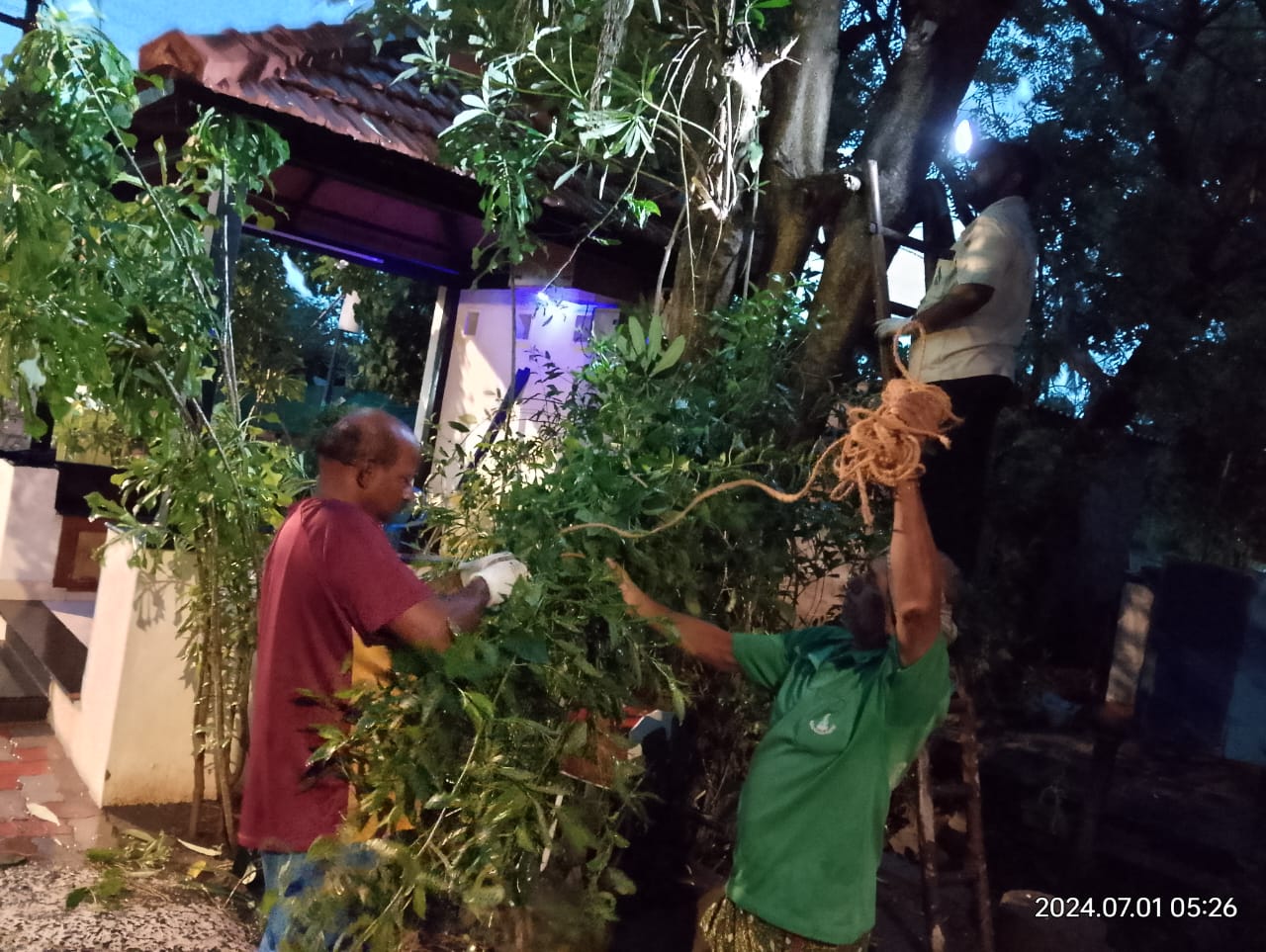 - గస్తీ గది పైన బాగా పెరిగిన మహావృక్షం కొమ్మల్ని తొలగిoచారు, లేకపోతే అవి కరెంటు తీగల్ని రేపోమాపో తాకేవే!