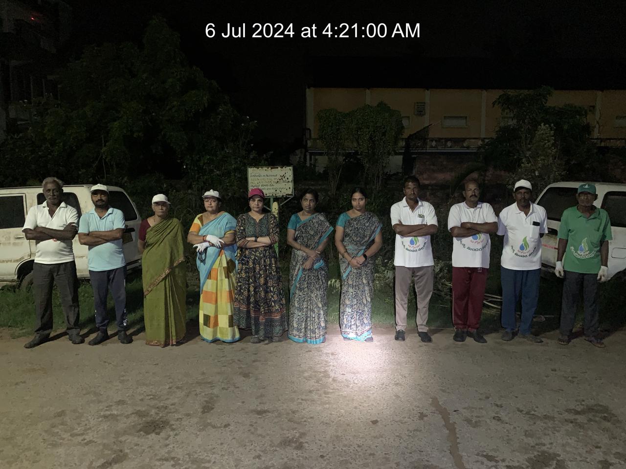 తారీఖు 6.7.24, కాలం వేకువ 4.20 - 6.12, పరిశుభ్రత అలవరచుకొన్న ఊరి భాగం సాగర్ పేరుగల సినీ పదర్శనశాల ఉత్తరాన, సామాజిక కర్తవ్య వ్యసన పరులు ఏడెనిమిది మంది మహిళలతో సహా 33 మంది, బాగుపడిన ప్రాంతమైతే - బొత్తిగా 50 గజాలు!
