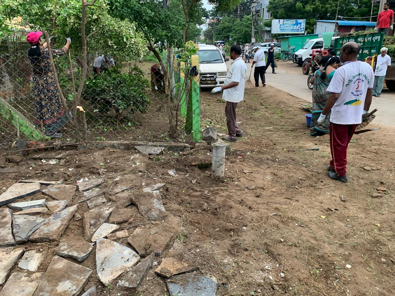 - ఉద్యానం వెలుపల కూరుకుపోయిన ప్రాత చతుశ్చక్ర వాహనాల క్రింద గడ్డీ- గాదం తొలగించడమూ,