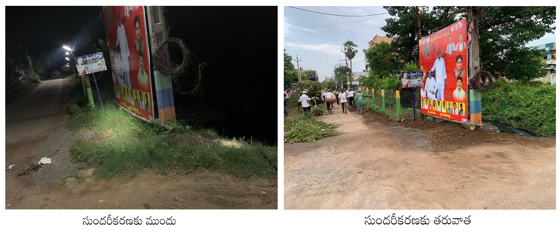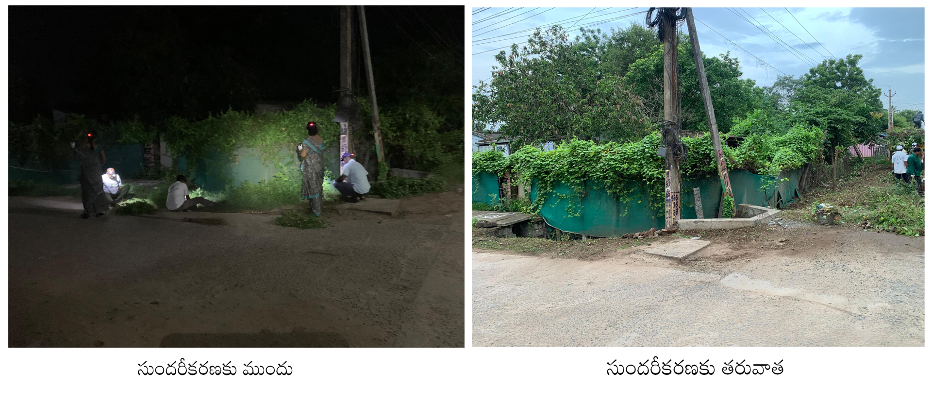 - మురుగు కాల్వల్లో దిగలేదుగాని - వాటి అంచులపైన నిలిచి, గడ్డినీ, పనికి మాలిన చెట్ల కొమ్మల్ని తొలగించడమూ,
