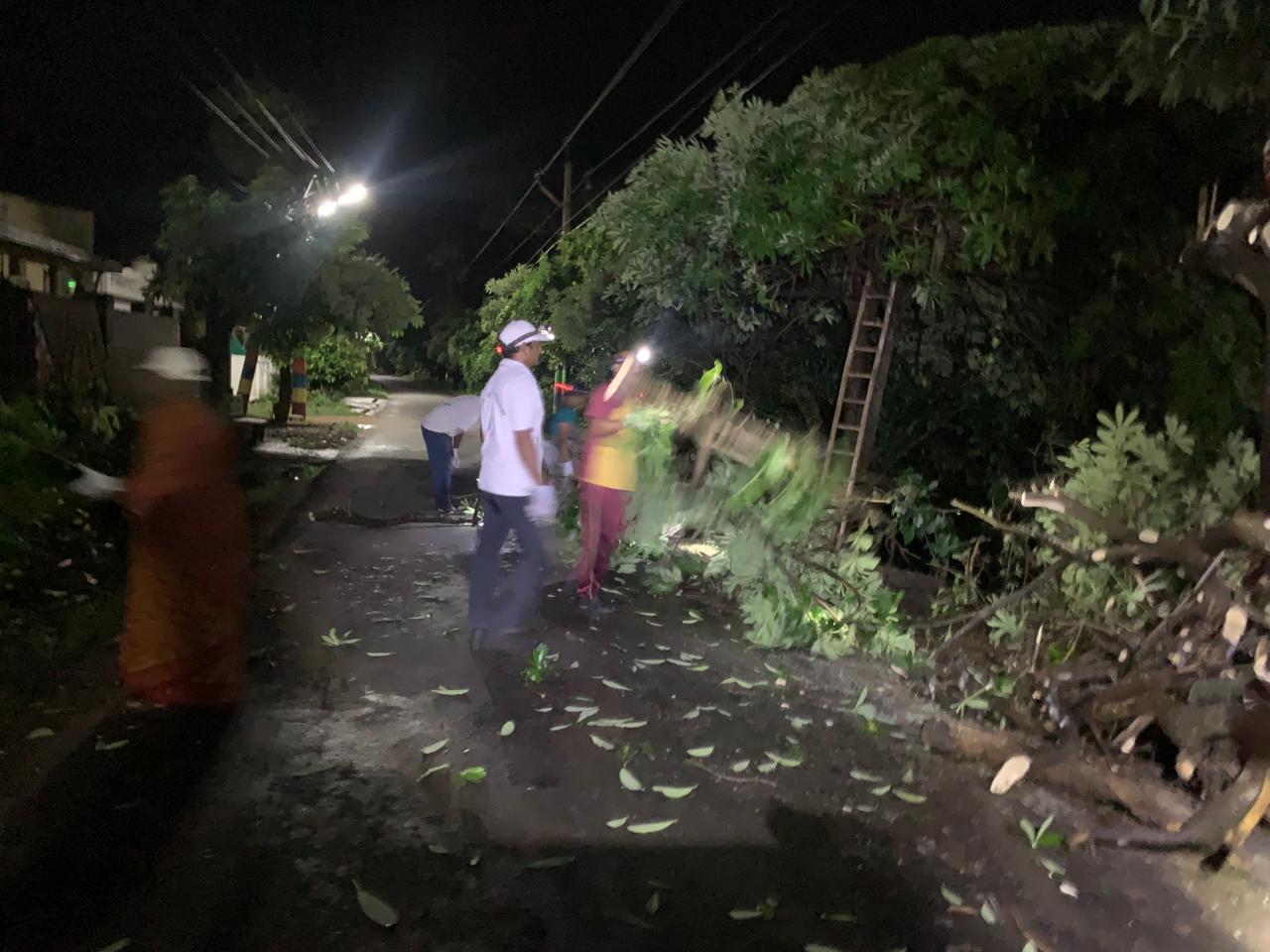 కార్యకర్తల నేటి కష్టంలో ముందుగా పేర్కొనదగింది ఏడెనిమిది ఏడాకుల చెట్ల కొమ్మల కుదింపు! ఇందుగ్గాను గొడ్డలి, కొడవలి ఒడుపు తెలిసిన ఆరేడుగురూ, బాగా ఎత్తుపీట ఎక్కి మర రంపంతో వృక్ష