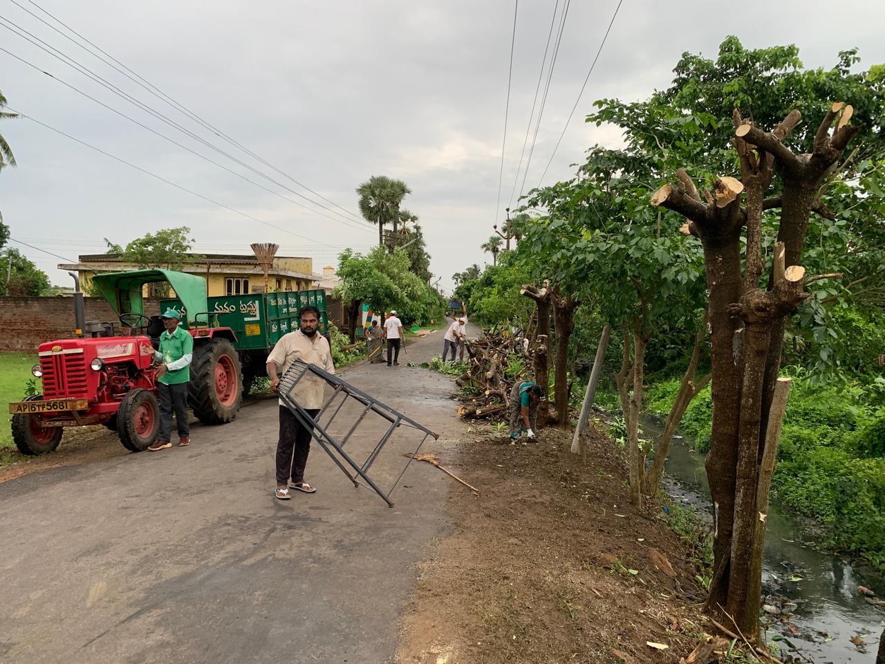 మహిళల్తో సహా 5 గురు ఆ పెద్ద కొమ్మల్ని సైజులుగా నరకడమూ, బాటకు తూర్పున పెద్ద గుట్టలుగా పేర్చడమూ!