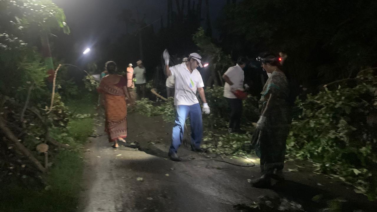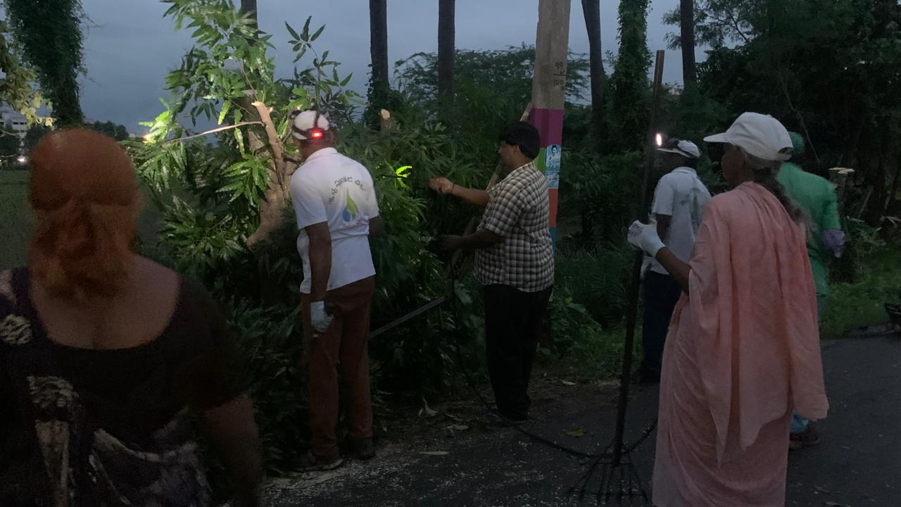- తాత్కాలిక చెడువాసనగా, ఆరోగ్య భంగకరంగా భ్రమపడుతున్న ఏడాకుల చెట్లను 7-8 మంది రంపంతోనూ, కత్తుల్తోనూ ట్రిమ్ చేసే పనిలోనూ
