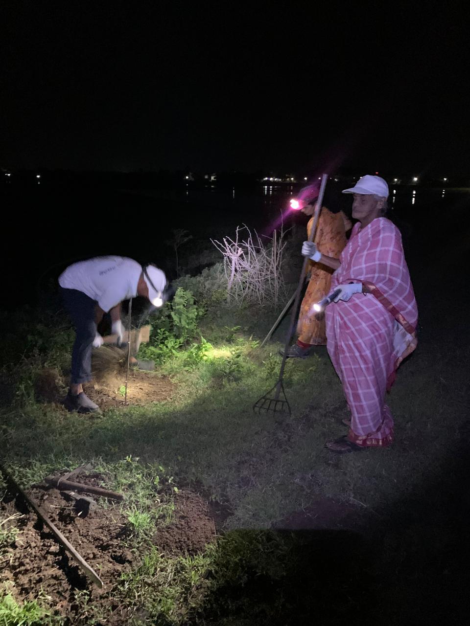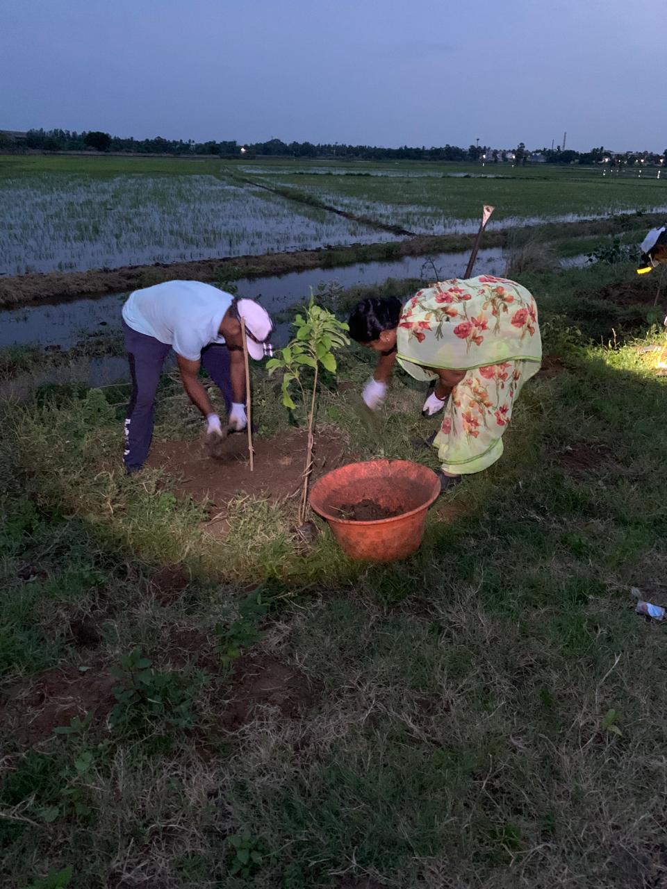 - తామనుకొన్నట్లు నిన్న మొక్కలు నాటిన తరువాయిగా ఈ వేకువ గోతులు త్రవ్వి, నల్లమన్నూ ఎరువూ వేసి, ఖాళీ చోట్ల నాటిన పూల మొక్కలు 57,