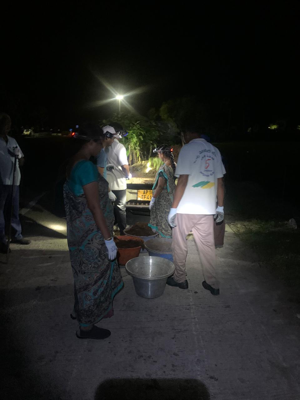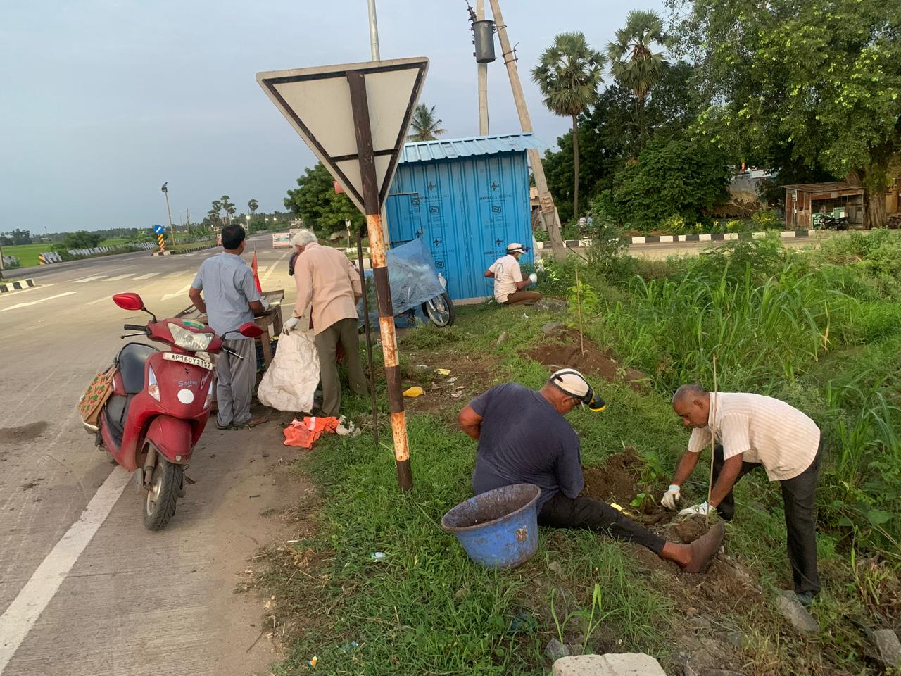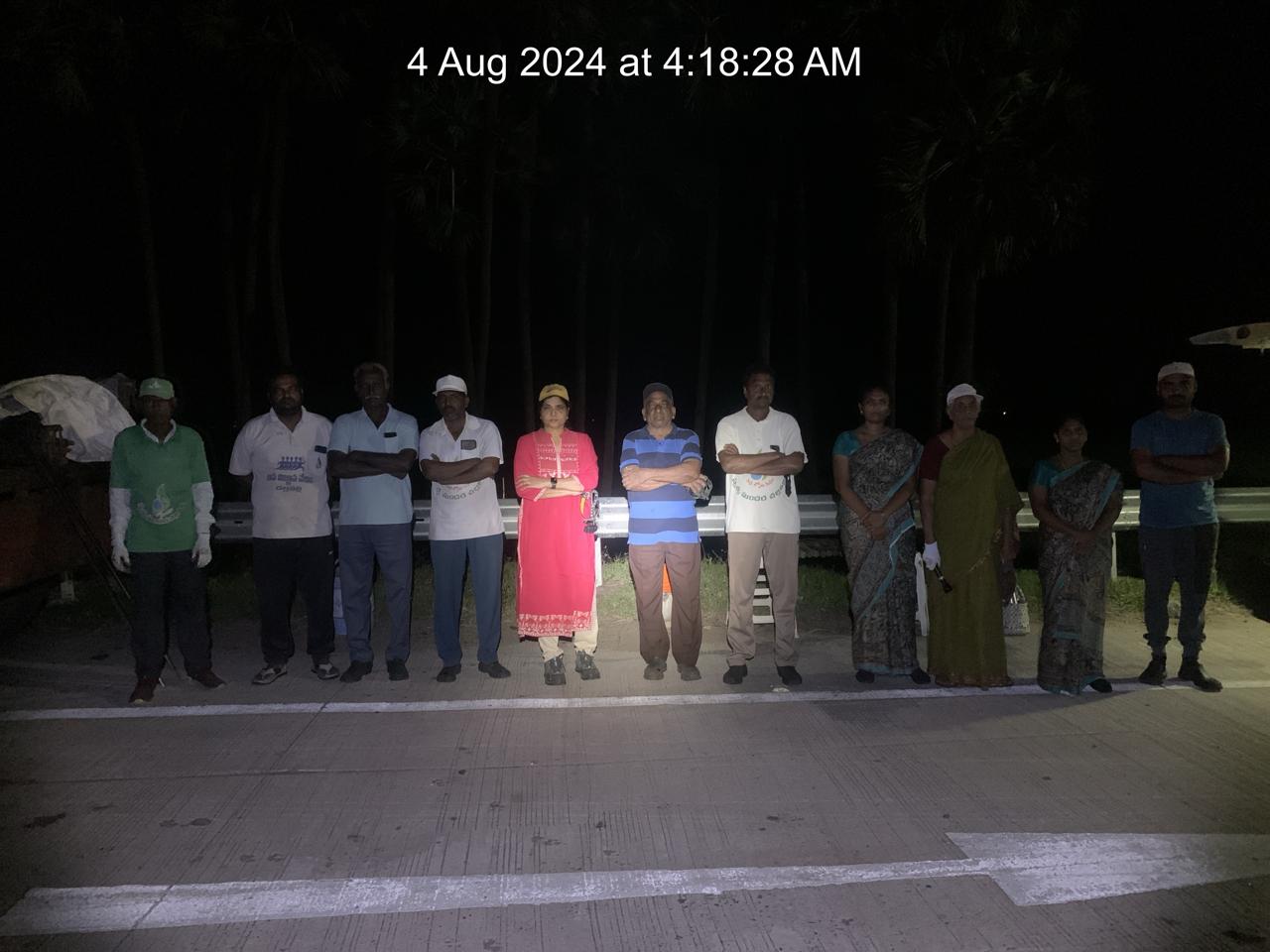 ఆదివారం(4.8.24) వేకువ అదే సమయం 4.18-6.10, స్థలం 216 వ జాతీయ రహదారి మీద కాసానగర్ సెంటరు, మనుషులు 38 మంది, పనైతే 50 x100 గజాలలో అంటే ఎకరంపైగా, అందులో 60 అడుగుల రాదారీ, వెడల్పాటి మార్జిన్లూ,  ప్రక్కన లోతైన డ్రైసులూ!