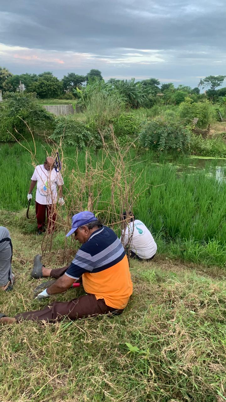 మొక్కల రక్షణగా ముళ్ళ కంపలు పడిపోతే కూర్చొని రిపేరు చేసిన వాళ్లూ, దంతెలతో అప్పటికప్పుడు కోసిన గడ్డిని లాగేవాళ్లూ, ఆ తుక్కును మొక్కలకు దూరంగా పొలం వేపు గట్టున సర్దుతున్న వాళ్లూ!