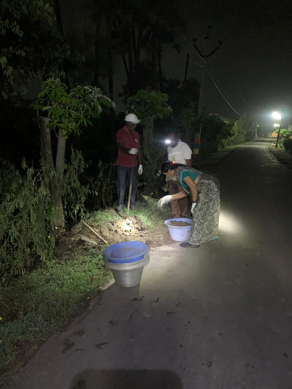 - భవఘ్నినగర వాసులూ, ట్రస్టు సంబంధీకులూ ఏనాటిదో ఎండు మురుగు మట్టి మేటల్ని త్రవ్వి, ట్రాక్టర్లో నింపుకొని దూరంగా ఉన్న మామిడి మొక్కల పాదుల్లో ఎరువుగా రక్షణగా సర్దడమూ,