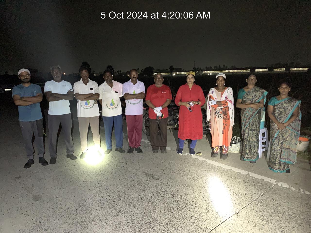 శనివారం (5.10.24) వేకువ జామున - నిర్ణీత సమయానికి ముందే - 4.20 కే డజను మంది ఊరికి 2-3 కిలో మీటర్ల దూరంగా వచ్చేశారు - 216 వ జాతీయరహదారిలో- నూకలవారిపాలెం డొంక దగ్గరికి మరో 2 డజన్ల మంది కూడ వచ్చి కలిసి, 36 మందీ 6.05 దాక ఏ విధంగా శ్రమించారో చూద్దాం!