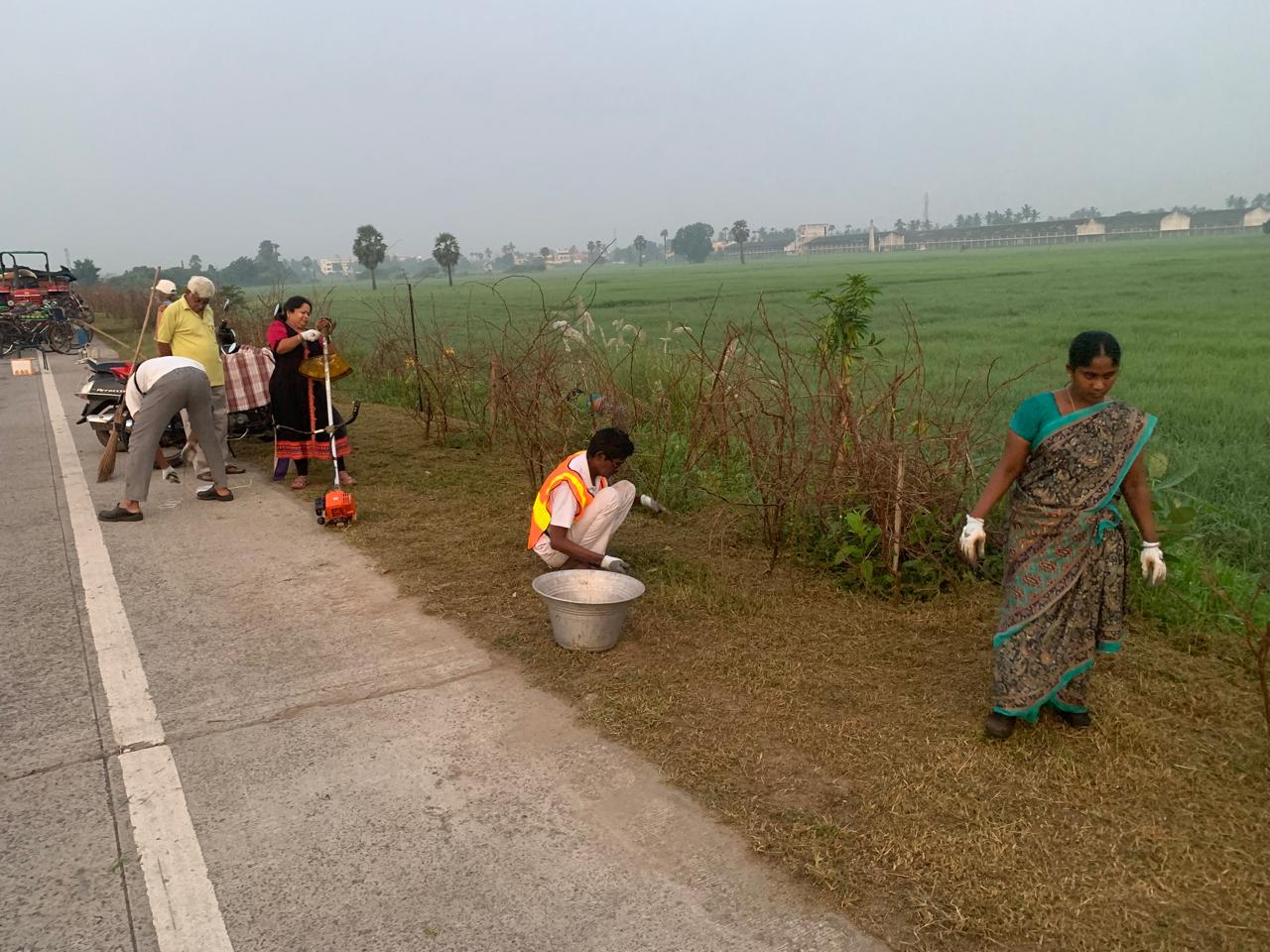 ఇలా చూస్తుండగానే 50-60 గజాల రాదారి మార్జిన్ బాగుపడింది. అప్పటికి బండ్రేవుకోడు కాల్వ అంచున 5 గురు చేసి రోడ్డు భద్రత కూడ ముగిసింది.