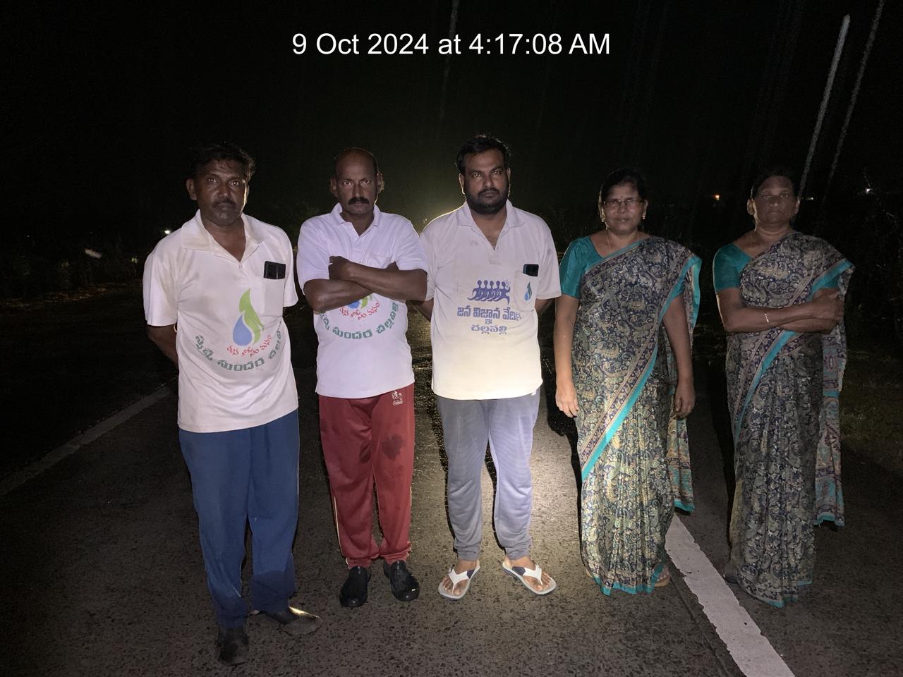 బుధునివారం (9.10.24) వేకువ నాల్గుంబావుకు ఊరికి దక్షిణాన – 216 వ జాతీయమార్గం - నూకలవారిపాలెం డొంక దగ్గరకు చేరుకున్నది అరడజను మంది మాత్రమే! అందుక్కారణం అంతకు కాస్తముందు వానభగవానుడు బాగా దబాయించడమే!
