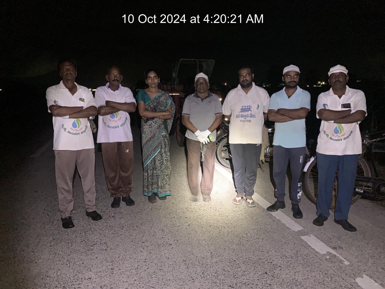 ఇది గురువారం – వేకువ – 4.20 - 6.10 నడిమి కాలపురహదారి శుభ్రతా ప్రయత్నం! ప్రయత్నీకులు 28 మంది! అడపాదడపా NH216 కు దక్షిణంగా కొందరు పనికి దిగినా, ప్రధానంగా ఉత్తరపు దిక్కునే 15 మంది శ్రమ వైభవమూ నెలకొన్నది!