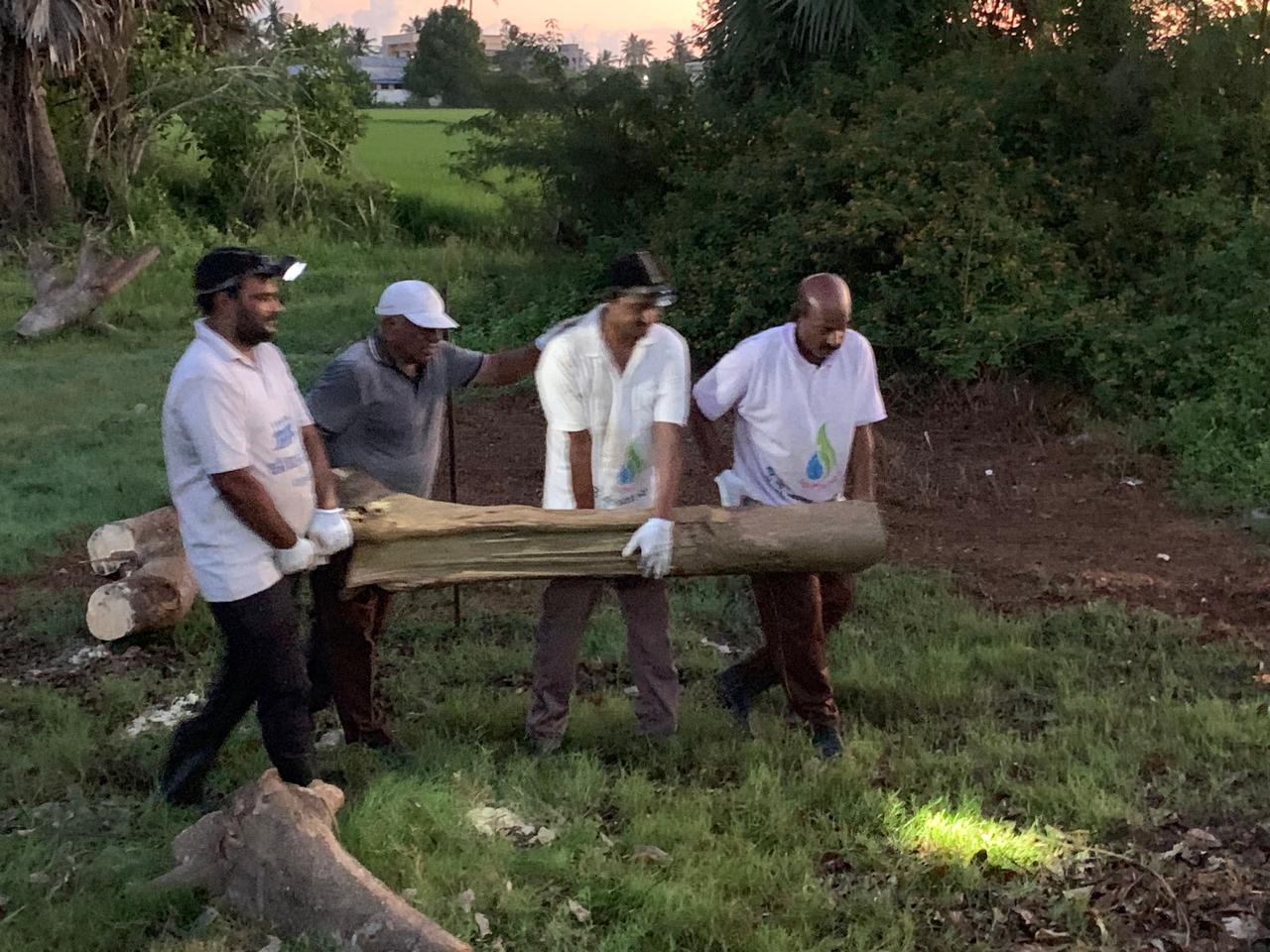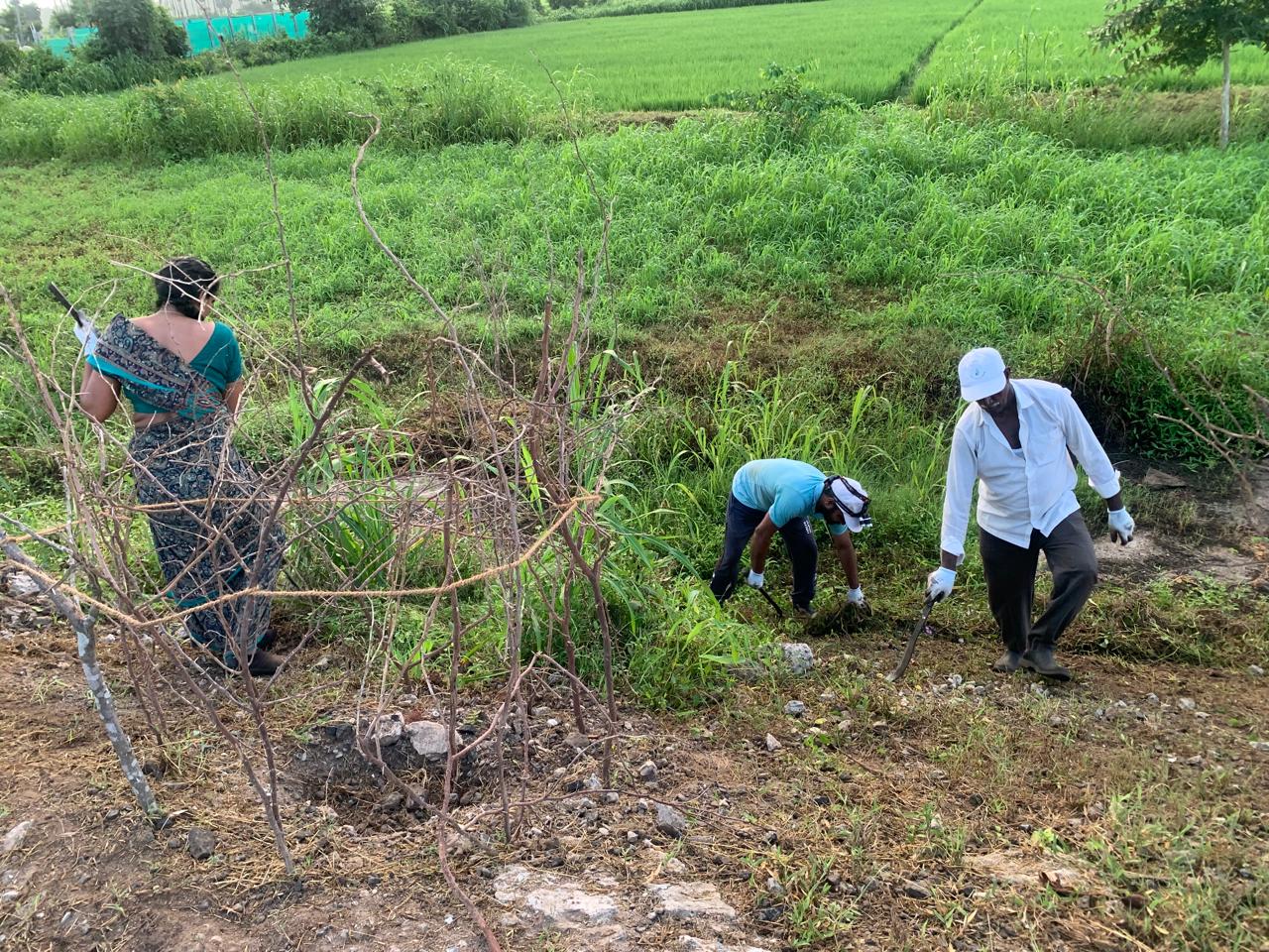 పని జరుగుతున్న 3 చోట్లా - కిలోమీటరు పర్యంతమూ ఒక వృద్ధాతి వృద్ధ వైద్య కార్యకర్త మంచి నీళ్ల రవాణా చేస్తూనే ఉండెను! ఎవరికీ డీ-హైడ్రేషన్ రాకుండా ఆయన జాగ్రత్త ఆయనది మరి!