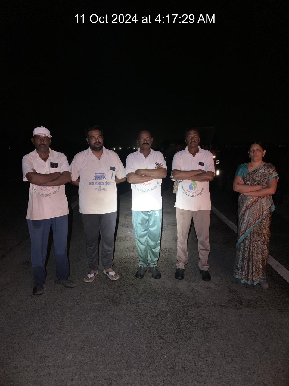 ఇది శుక్రవాసరం - 11-10-24 వేకువ 4,15-6.20 నడిమి సమయం! అప్పుడక్కడ – 16 వ రహదారి – 22 వ కిలోమీటరు వద్ద వీధి శ్రమదాన ఉద్యుక్తులు అరడజను మందే! బహుశా ఆ చిన్న సంఖ్యకు కారణం అంతకుముందు తగులుకున్న వర్షం కావచ్చు! కాని, నిముష క్రమంలో వాళ్ల బలగం  పెరిగి పెరిగి 31 దగ్గర ఆగింది!