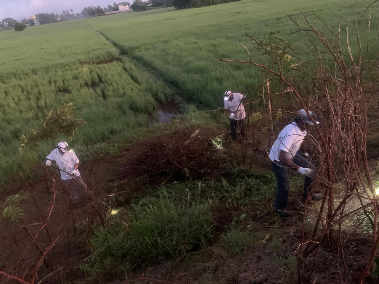 వాలుగా- గజమున్నర లోతుగా పల్లంలోకి దిగి, పిచ్చి- ముళ్ల- చెట్లను తొలగిస్తున్న 10 మంది కష్టమూ నా కంట బడ్డది! కష్టాలను ఇష్టాలుగా మార్చుకొని, పనిలో ఆనందాన్ని కనిపెడుతున్న అనుభవజ్ఞులు వీళ్లు!