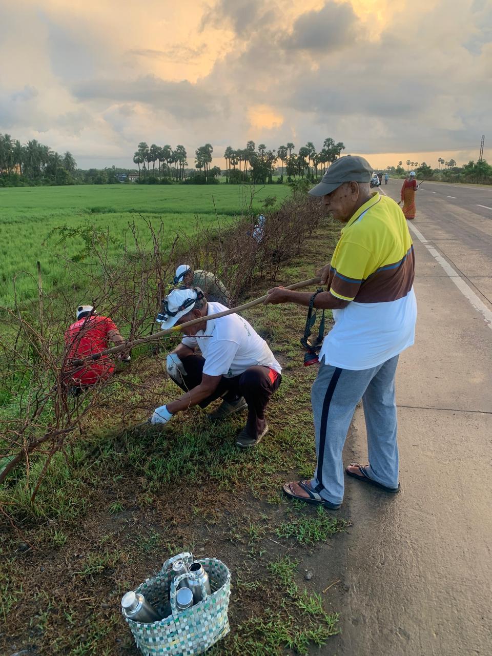 60 -70 ఏళ్ల పెద్దలు ప్రయాణికులు విసిరిన ప్లాస్టిక్ సంచులూ, సీసాలూ ఏరుతుంటే గమనించాను!